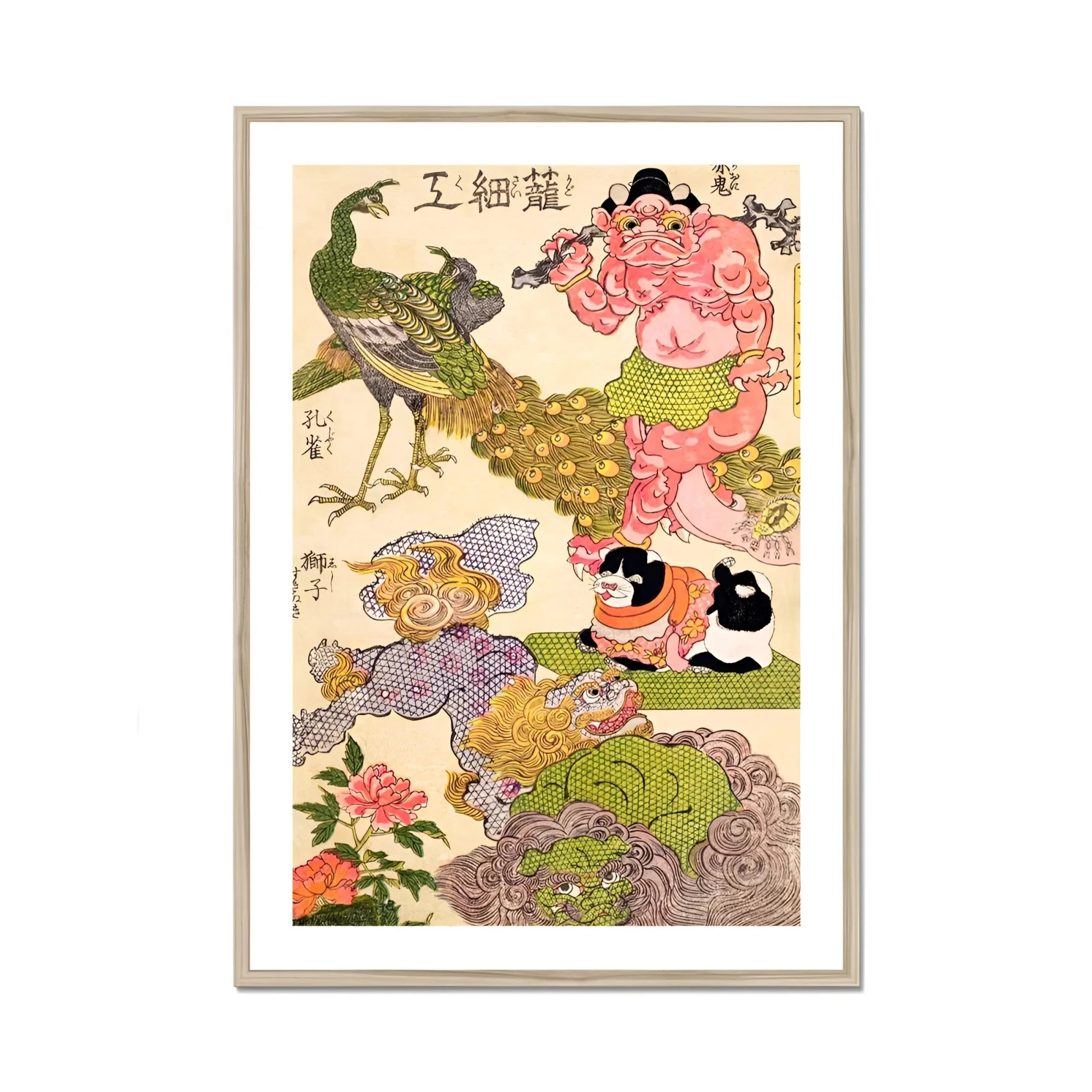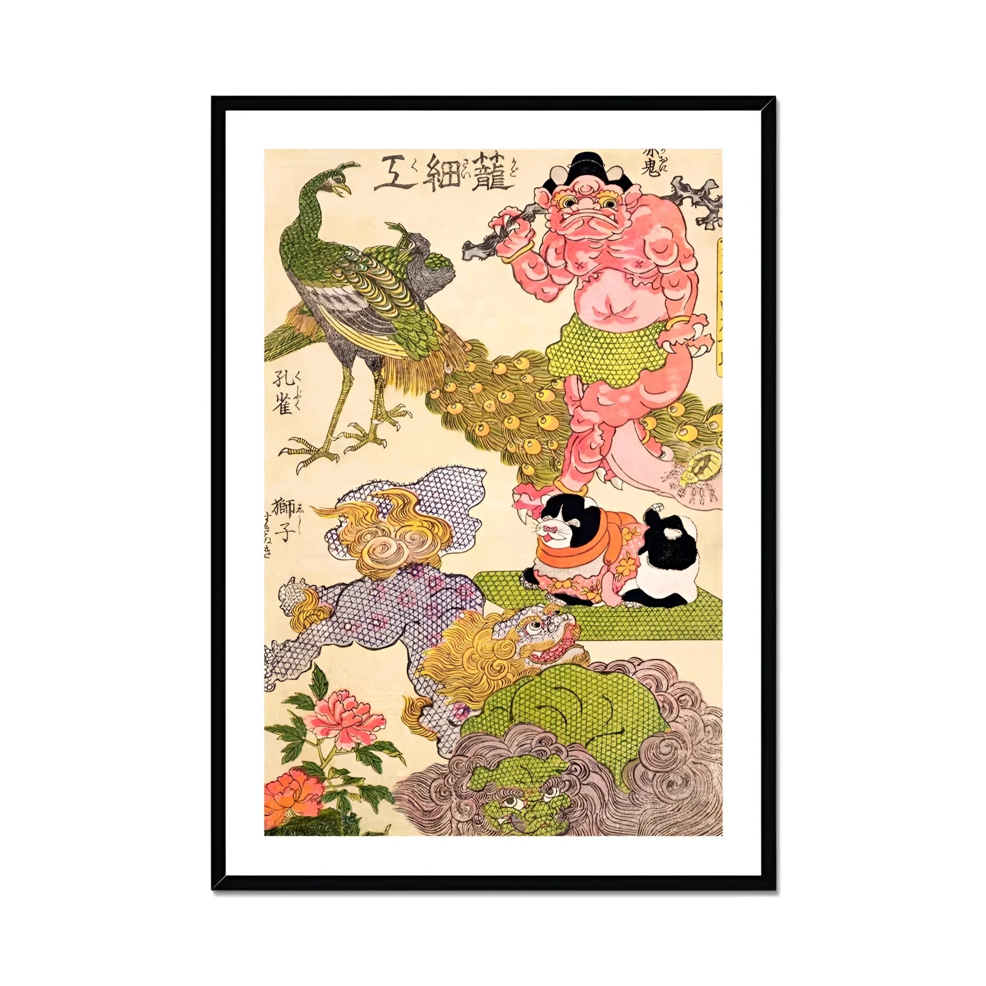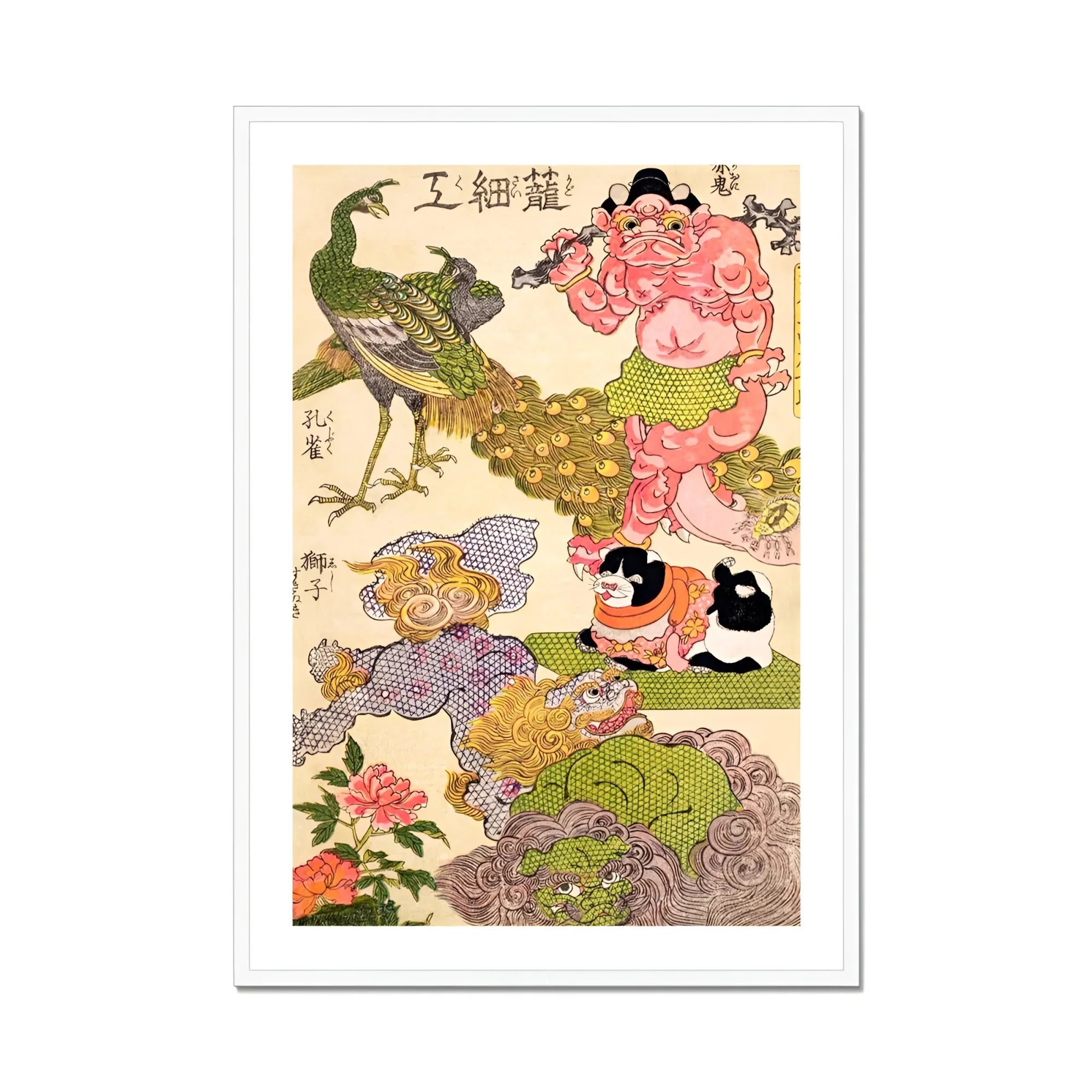 Oni, Peacock, Shishi, Cat and Insect - Utagawa Kunisada Art Print