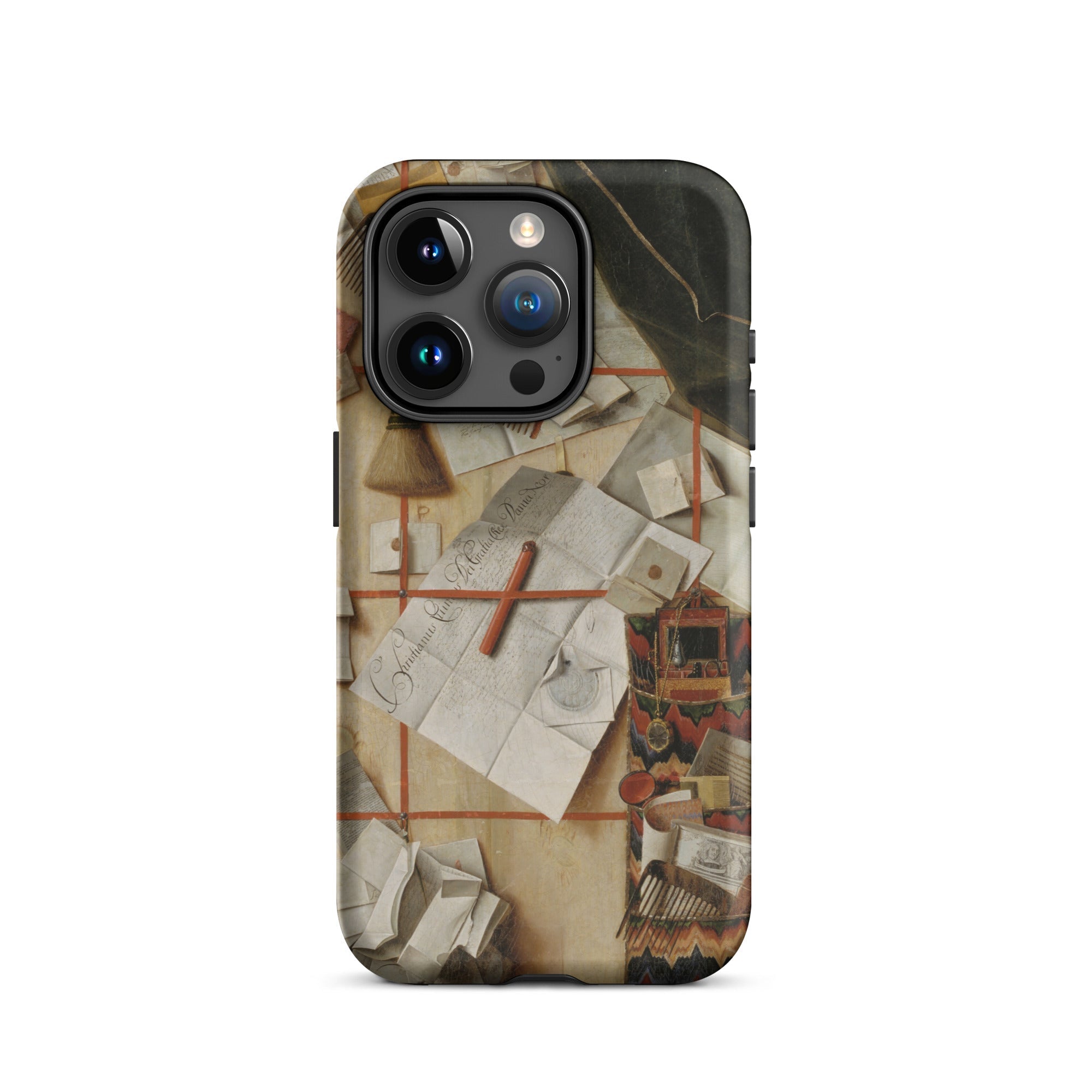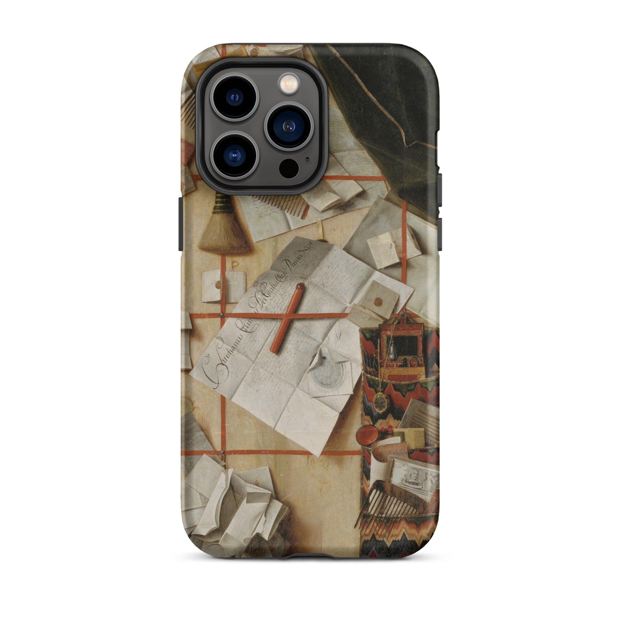 A slip of the mind. A ghost of the hand. This trompe-l’oeil phone case unravels the geometry of memory with the precision only a Flemish painter like Cornelis Norbertus Gijsbrechts could summon in oil and sleight-of-hand. His Trompe-l'oeil with a Wall of Letters isn’t just a 17th-century illusionist painting—it’s a Baroque séance in stationery: quills gone mute, wax seals whispering secrets from another regime of thought.