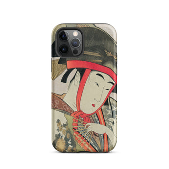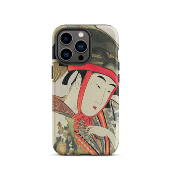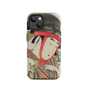 Cradle a slice of Edo-period elegance with this iPhone case showcasing Utamaro Kitagawa's ukiyo-e masterpiece. Framed by a striking crimson silk headdress, the ethereal courtesan's alabaster visage will bewitch your gaze.