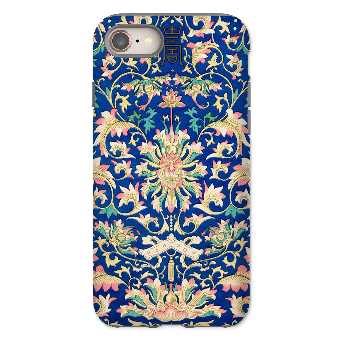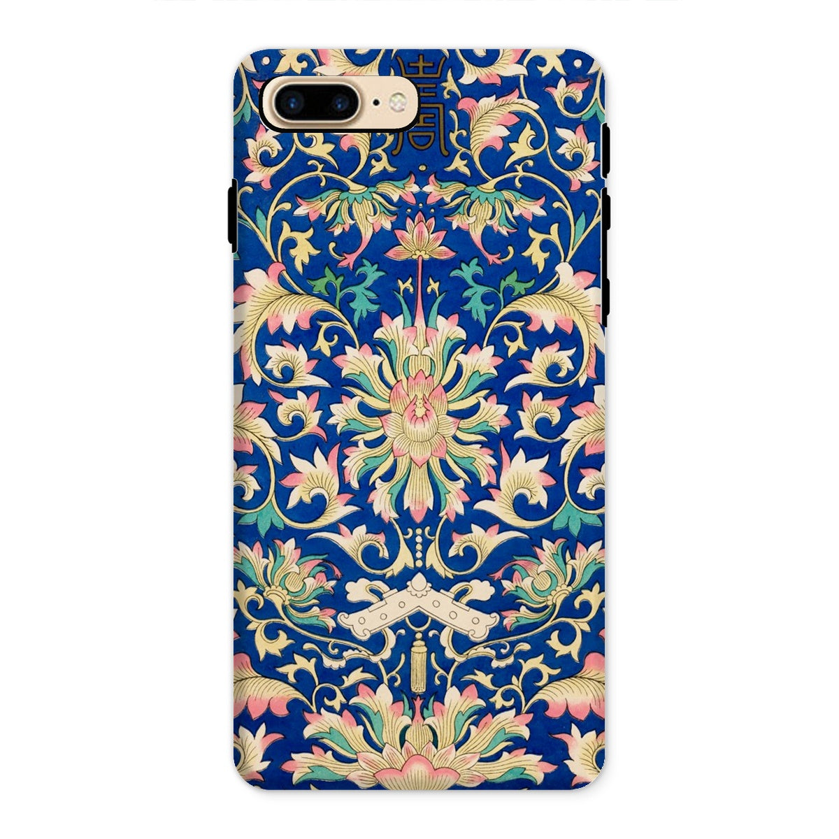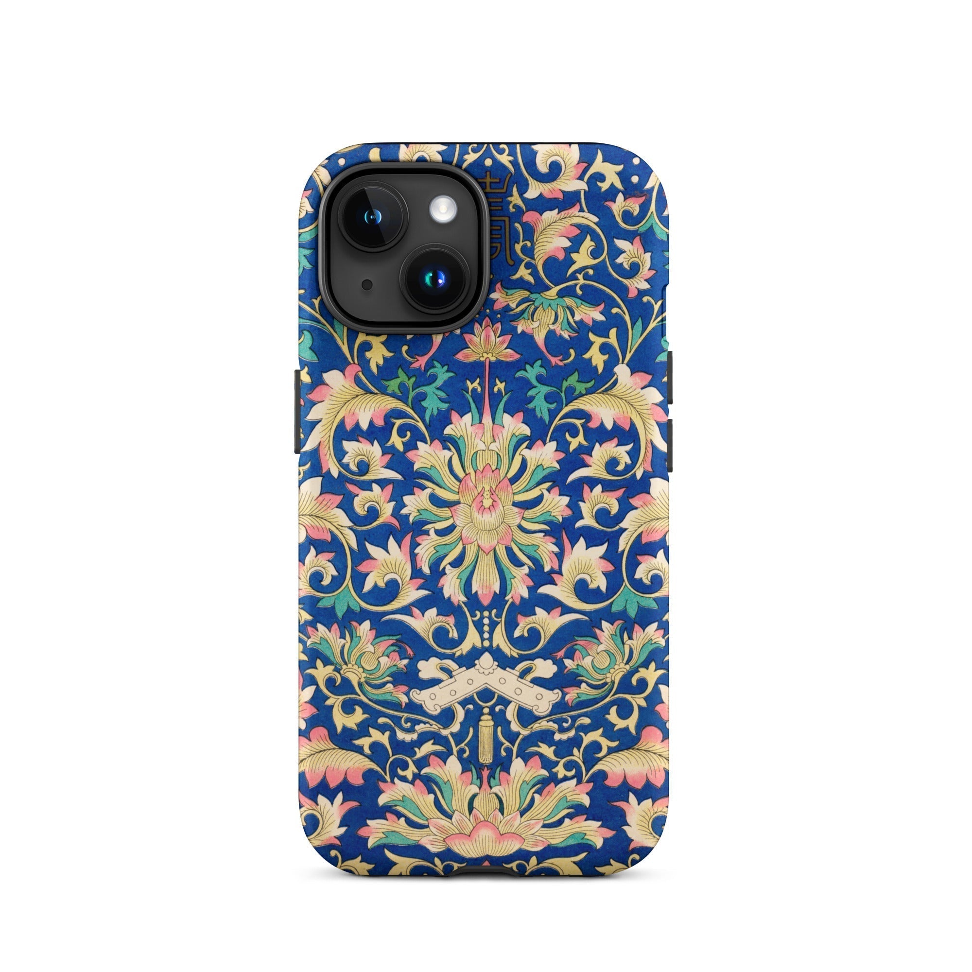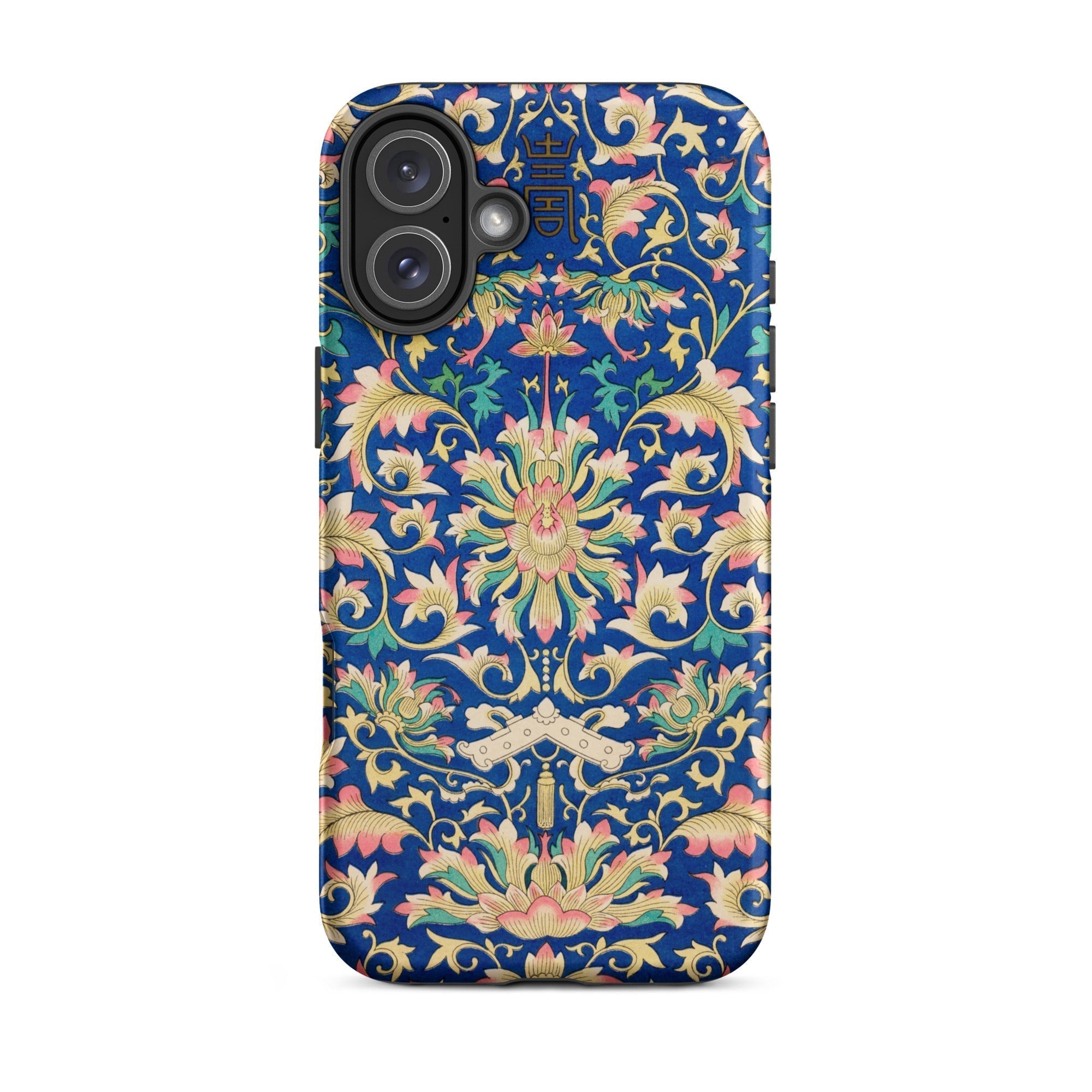 Plant yourself in Owen Jones's Chinoiserie-inspired iPhone case, a vibrant fusion of Victorian aesthetics and Eastern influences. This ornamental marvel showcases intricate floral patterns against a rich blue backdrop, echoing Jones's revolutionary chromolithography techniques. Delicate lotus blossoms and swirling acanthus leaves intertwine, creating a mesmerizing tapestry of cream, pink, and teal hues.