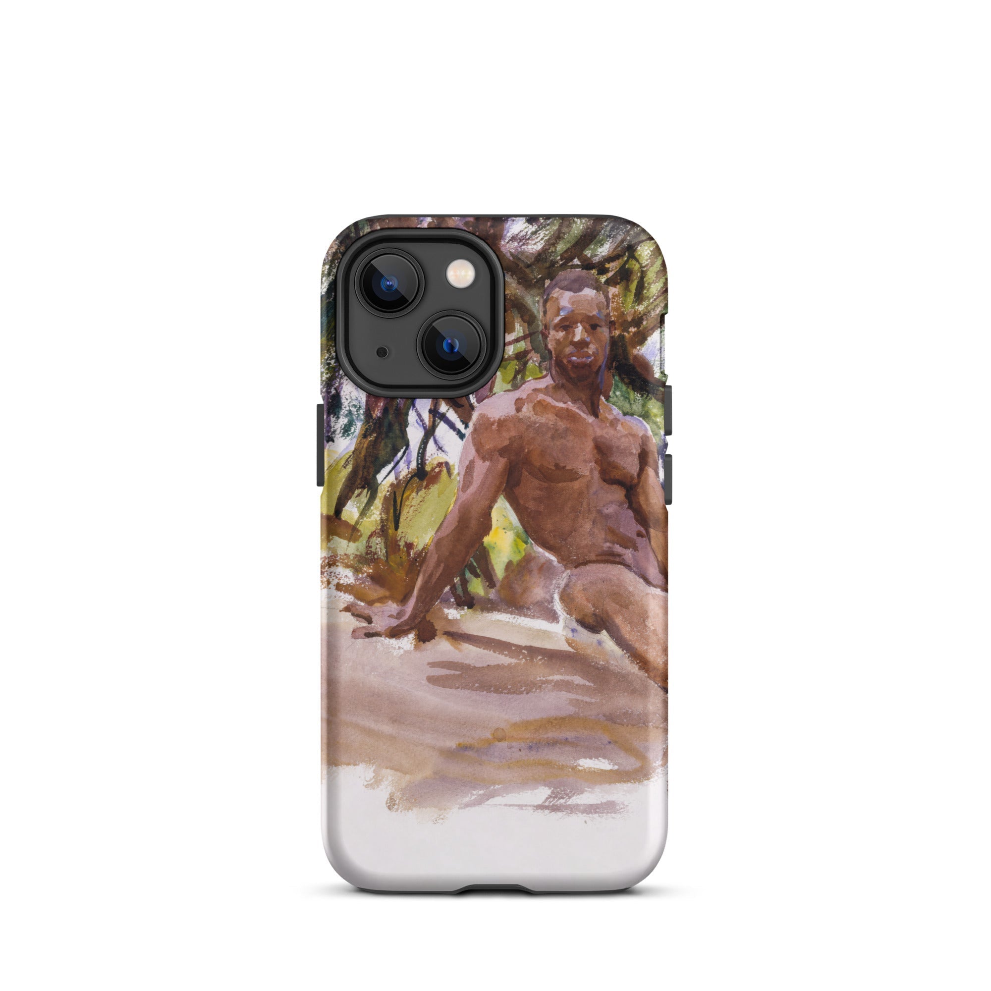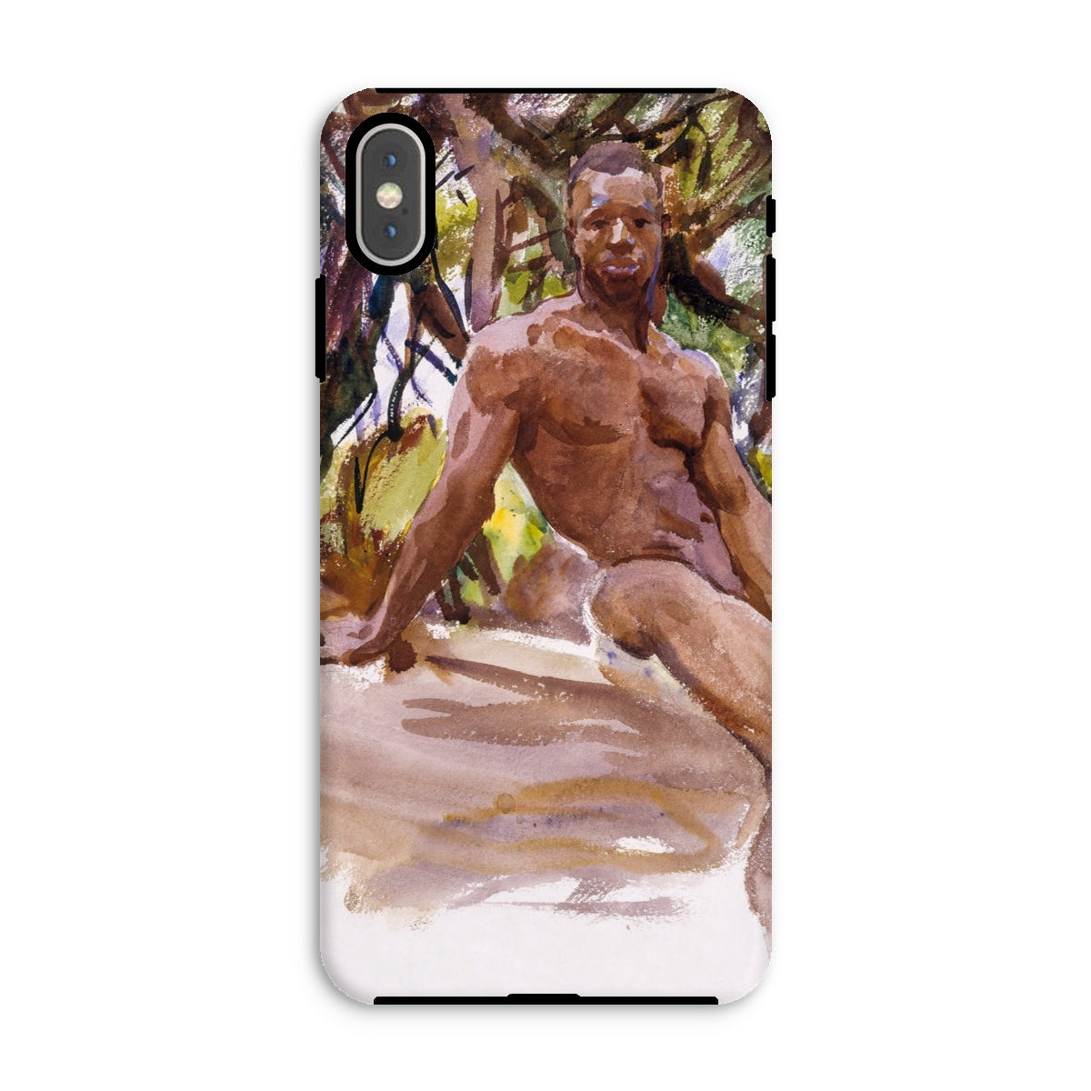 The nude figure straddles the branch of a mighty tree in languid defiance, his bronze form a testament to the male physique and queer desire. Lush greenery frames the scene, each leaf pulsing with humid vitality. This isn't just a phone case—it's a pocket-sized revolt against Victorian prudery, a celebration of the male form in nature's embrace.