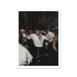 Expressive masculinity electrifies every bare shoulder, every collision. Homoerotic brushstrokes pulsing through the blur. And in the heat, Caravaggio sensuality calls. Sweat-stained fashion realism writhes at the altar of circuit gay revelry baptized in bass.