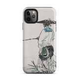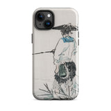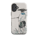 Cradling this This Meiji-era iPhone case, you'll feel the heft of bamboo poles in your hand, the weight of woven baskets against your hip. The fisherman's blue-tinged robe rippling with each cast, a dance of patience and skill etched in delicate lines. Bairei's minimalist strokes evoke the essence of rural Japan, a visual haiku on your device.