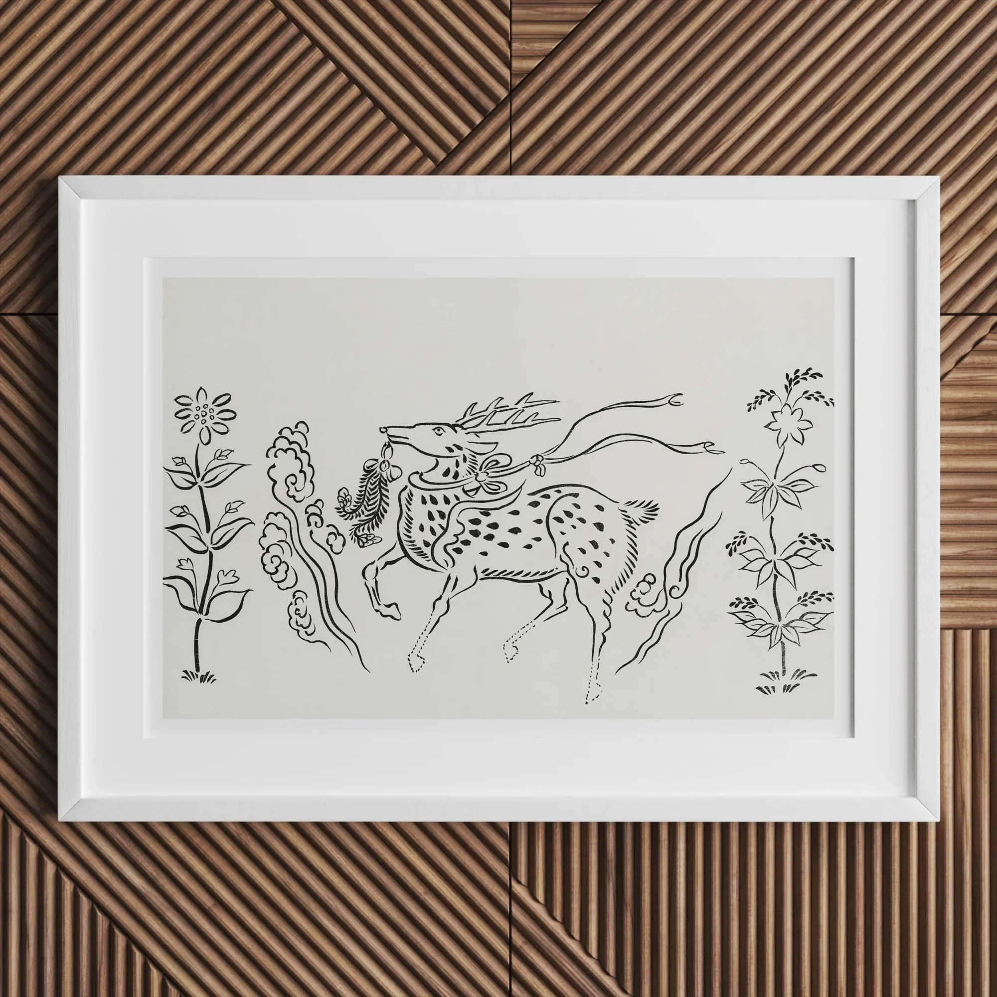 Tomoki's masterful linework breathes life into every element, from the deer's expressive eye to the intricate patterns adorning its body. This Yatsuo no Tsubaki print seamlessly blends traditional Japanese aesthetics with a touch of whimsy, creating a visual narrative that captivates and intrigues. As you gaze upon this artwork, you'll find yourself transported to a world where nature and fantasy intertwine, inviting endless contemplation of its hidden meanings and symbolism.