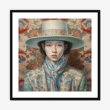 Their jacket, a ghost of imperial brocades and Western dust trails, is stitched with symbols of endurance, creation, resilience and unmatched beauty. A scarf coils at their neck, patterned with ink-brushed florals in bloom, mirroring the ephemeral revolution of their existence. For Longwei does not conform; they transform, rewriting the myths of the West and East with every unrepentant step.
