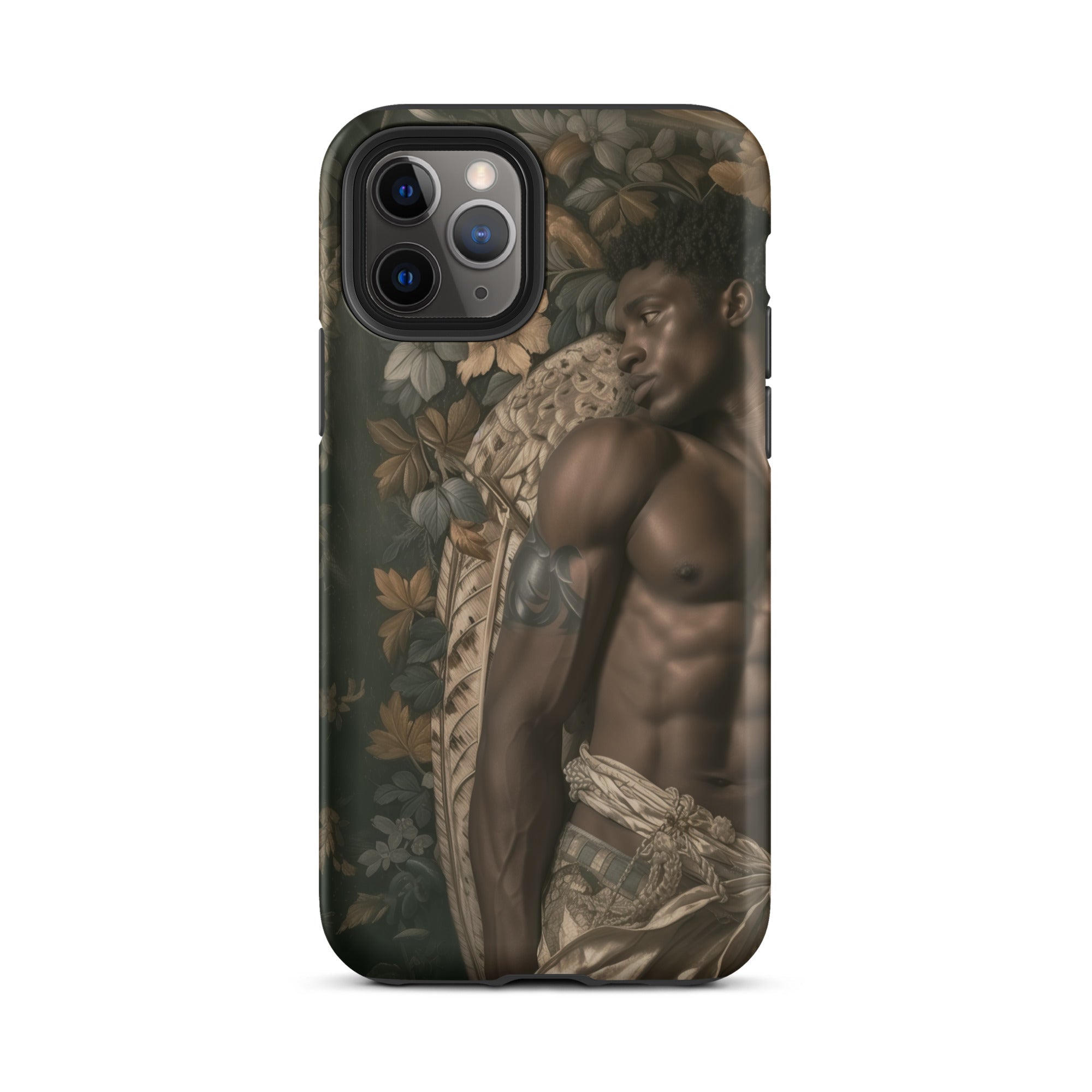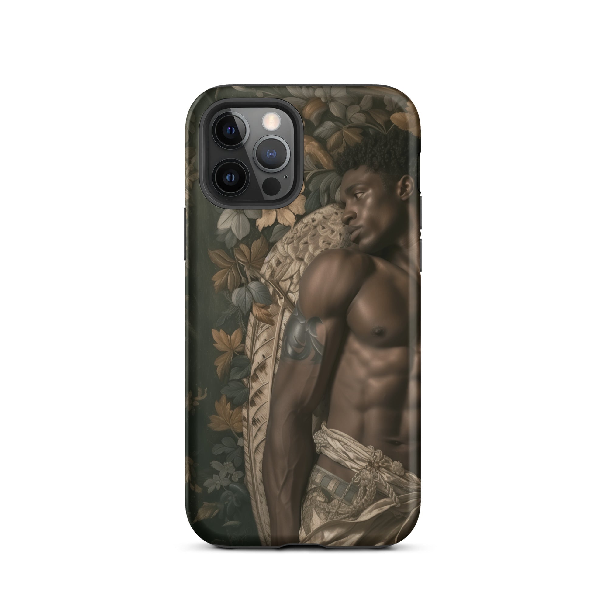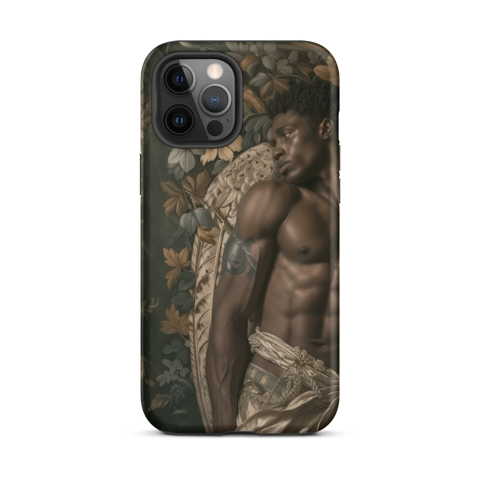 Draped in folds of soft, earth-toned fabric, his form is timeless yet urgent. His muscles, sculpted in chiaroscuro, breathe life into the traditions of Renaissance art, while his rich, golden-bathed skin declares the boundless beauty of Blackness. Around him, a quiet forest blooms—vines and florals coiling gently, as if drawn to his warmth. Each bearing witness—guardians and companions to his presence.