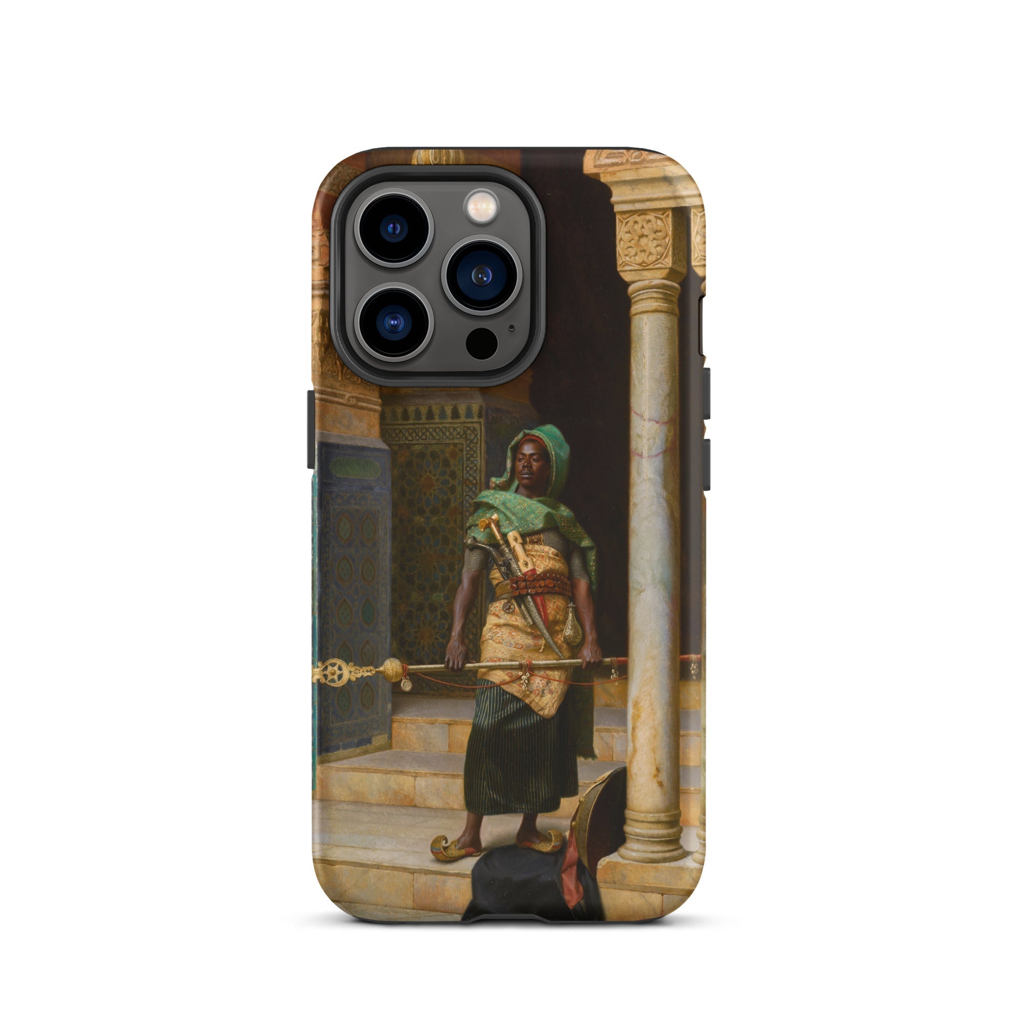 Protect your device while basking in the allure of 19th-century Orientalism. This case isn't just an accessory; it's a conversation starter, a piece of wearable art that marries form and function. Let The Nubian Guard stand sentinel over your iPhone, its stoic presence a reminder of untold mysteries and artistic mastery.