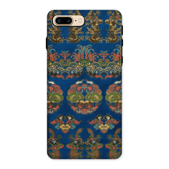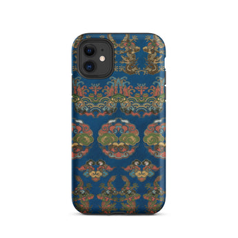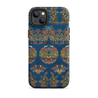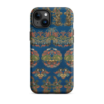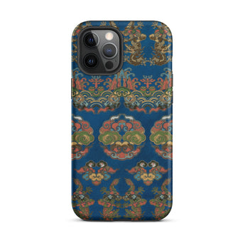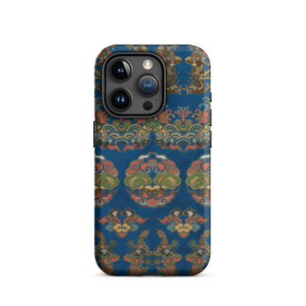 Unter einem Baldachin aus Kobalt entfaltet sich G.A. Audsleys blaues Fächer-Muster als kosmisches Rätsel. Ein Portal zu einem mythischen Himmel, wo Drachen nicht nur Schätze bewachen, sondern Symphonien des Chaos und der Balance komponieren. Ihre vergoldeten Körper winden sich durch Strömungen von wellenförmigen Wolkenbändern, die wie der Atem uralter Berge aufsteigen und eine Landschaft formen, die so vergänglich ist wie Träume und doch so bedacht wie die Schrift. Diese Drachen brüllen nicht; ihre Stille summt mit einer Alchemie der Schöpfung, ihre goldenen Schuppen glitzern wie zersplitterte Sonnen.