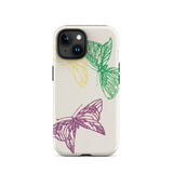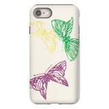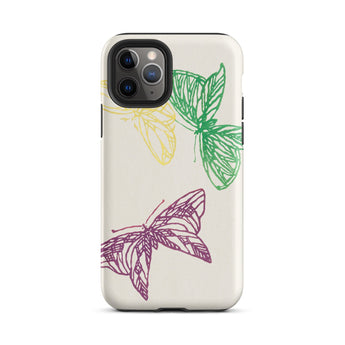 Fein in fließender Einfachheit geätzt, verwandelt Kamisaka Sekkas "Butterflies" ein alltägliches Motiv in eine ruhige Meditation über Form und Farbe. Diese iPhone-Hülle fängt drei Schmetterlinge ein, deren Silhouetten in lebhaften Tönen von Lila, Gelb und Grün dargestellt sind, mit filigranen Linien, die an feine japanische Kalligrafie erinnern. Ihre Flügel, definiert durch schwungvolle, fast tintenpinselartige Striche, scheinen im Flug zu flattern, eingefangen in der minimalistischen Reinheit des leeren Hintergrunds.
