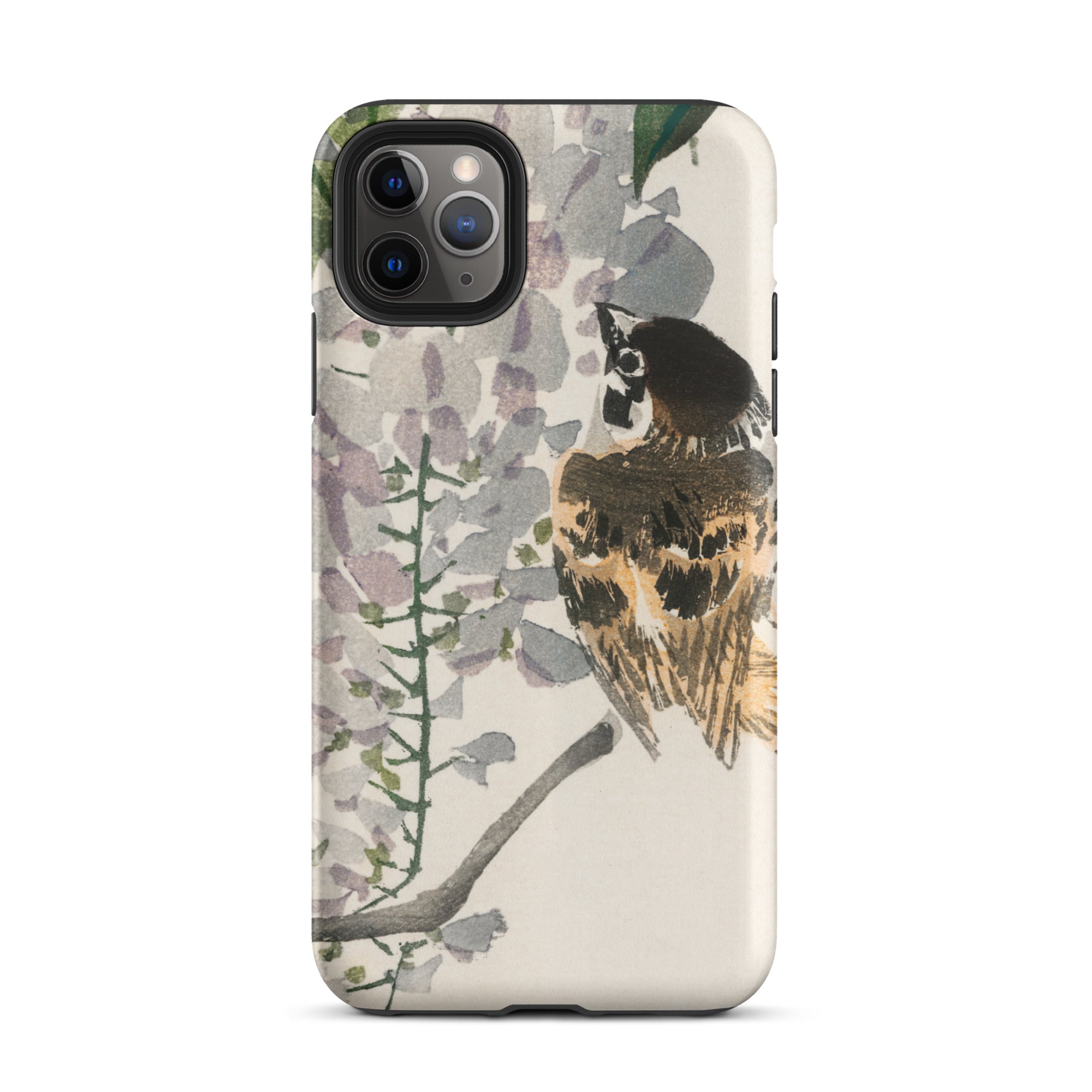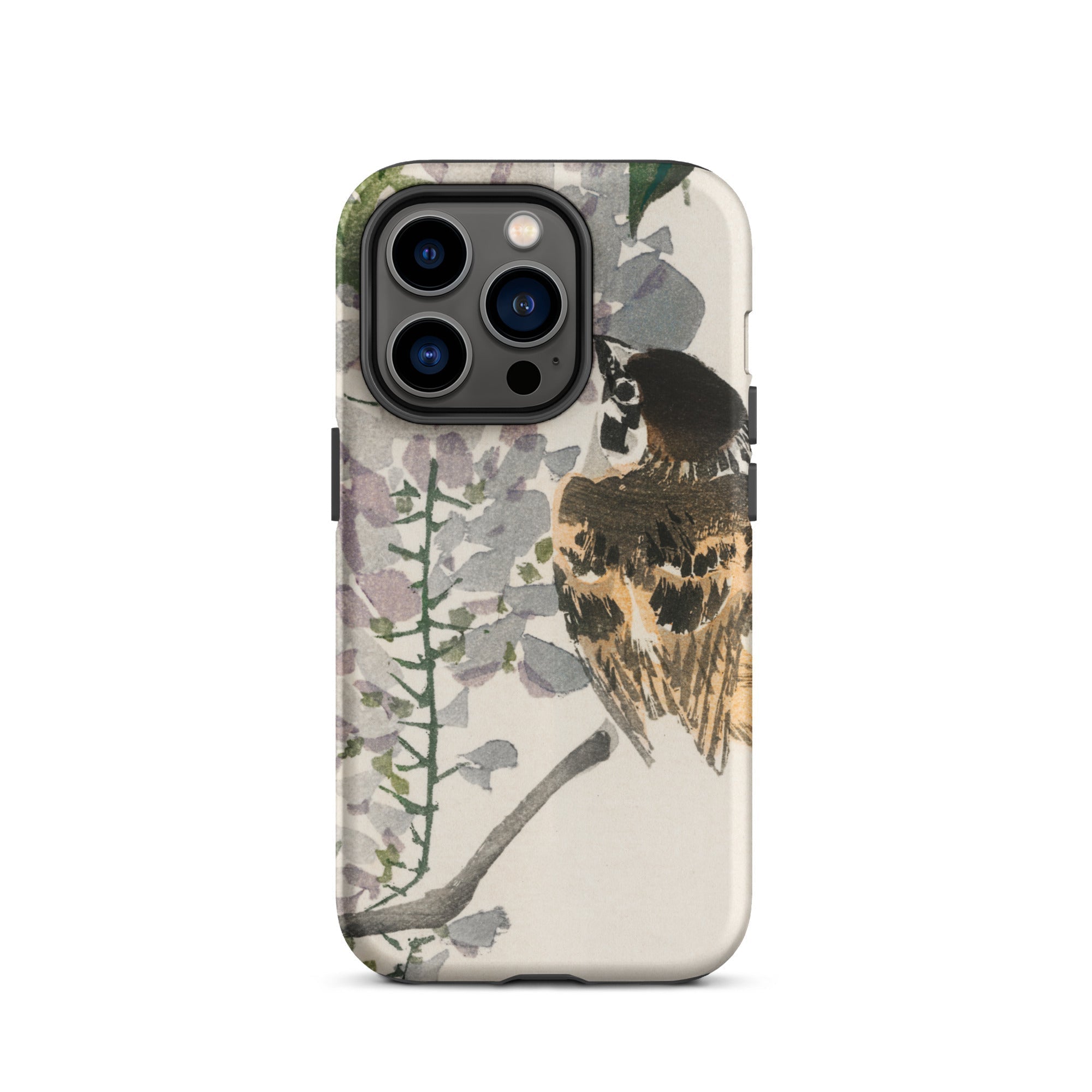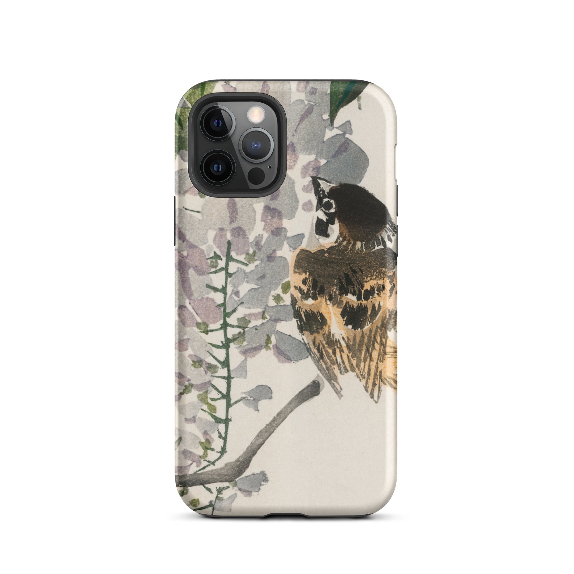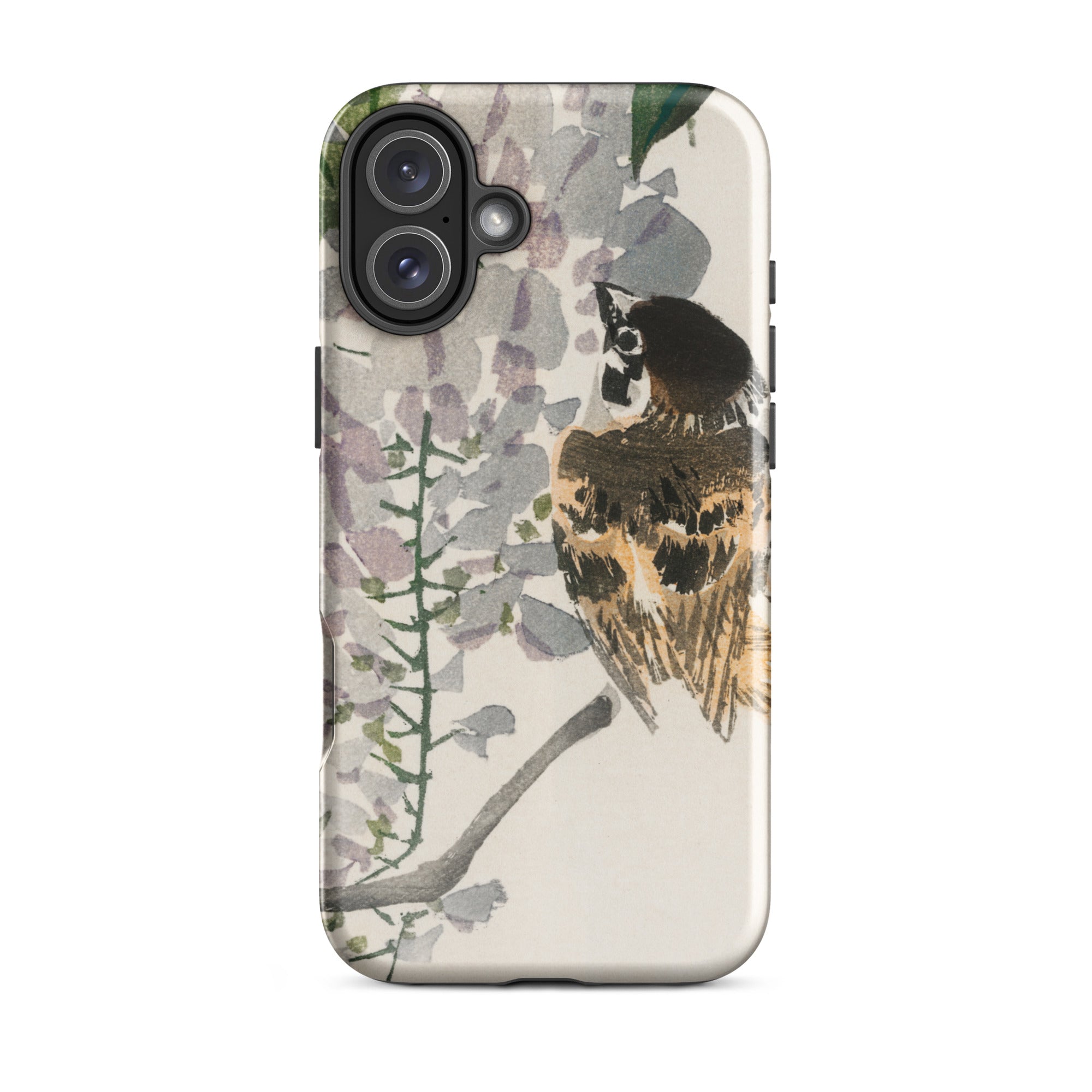 Sie halten eine Scheibe des Meiji-Ära Japans in Ihrer Handfläche mit diesem iPhone-Case. Kōno Baireis Pinselstriche verwandeln Ihr Gerät in ein Portal der Vogel-Kunst. Ein wunderschöner Spatz, dessen Federn in Siena und Umbra getupft sind, sitzt inmitten eines Wasserfalls von Glyzinienblüten. Zarte Blütenblätter, in hauchdünnen Grautönen und Fliedertönen dargestellt, rahmen die Wache des Vogels ein.