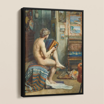 Männlicher Akt mit Akkordeon - Julien Renevier gerahmter Leinwand