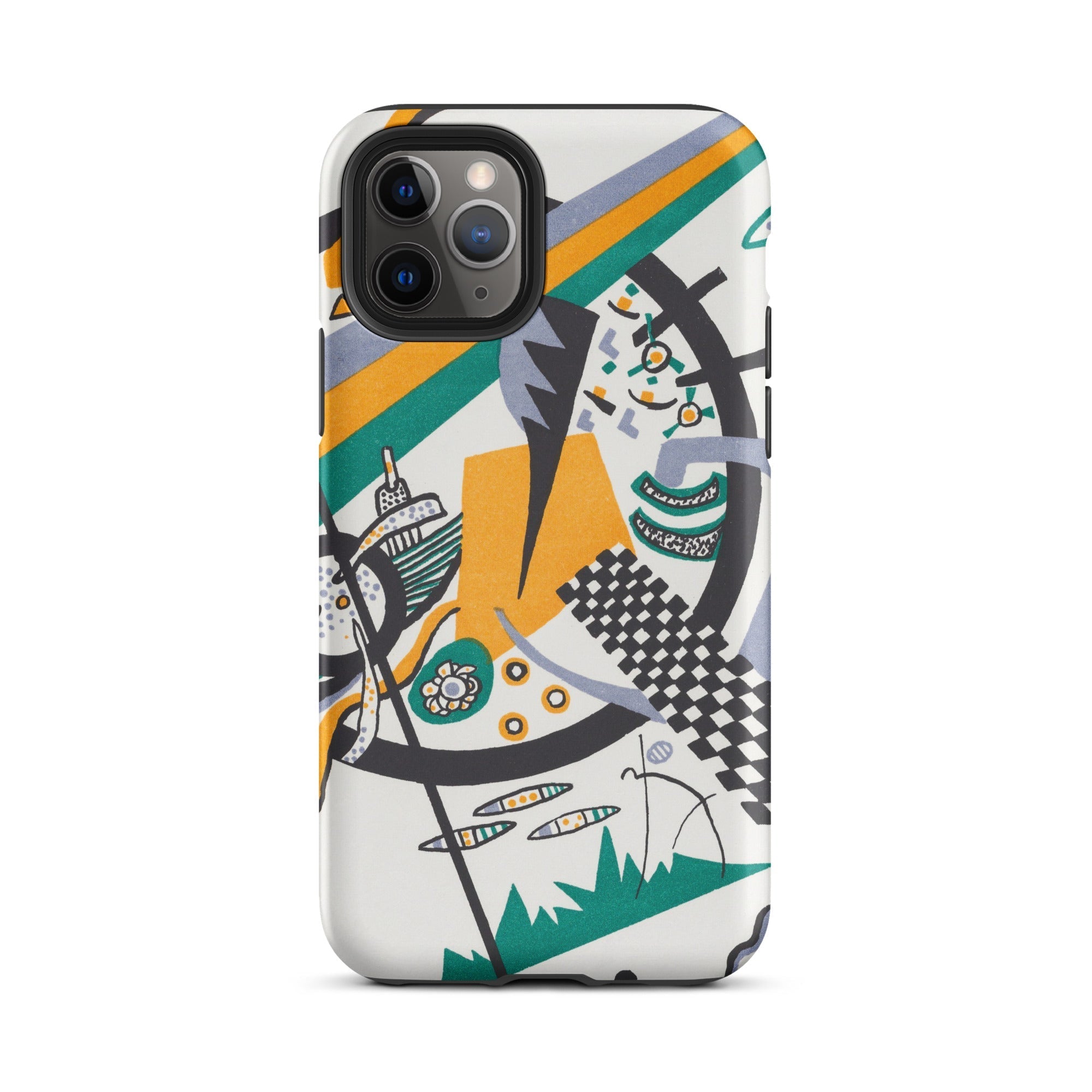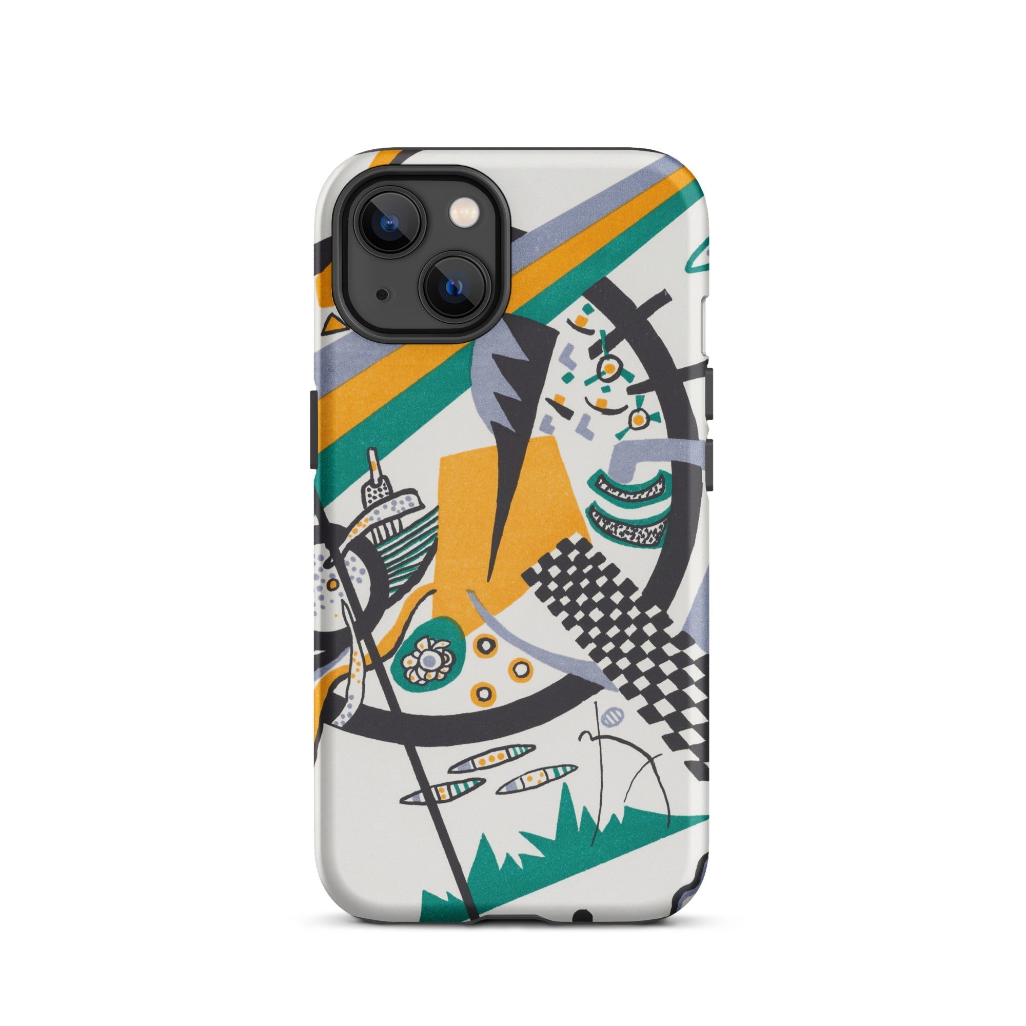 Diese iPhone-Hülle zieht Sie in die lebendige, rhythmische Welt von Wassily Kandinskys "Kleine Welten IV". Inspiriert vom Vater der abstrakten Kunst, fängt dieses Stück die Essenz von Bewegung, Emotion und dynamischer Geometrie ein. Jede Form auf der Hülle, von den eckigen schwarzen Formen bis zu den wirbelnden Kreisen, fühlt sich wie eine musikalische Komposition an, die in einem harmonischen, aber unvorhersehbaren Muster spielt. Die kräftigen Spritzer von Gelb, Türkis und Orange durchbrechen das Design mit Energie, während die komplizierten schwarzen und weißen Elemente eine Gegenbalance von Struktur und Kontrast bieten.