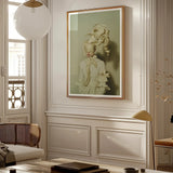 Eine Vision, gehüllt in skulpturale Stille, fängt dieser High-Fashion-Kunstdruck eine ätherische Metamorphose ein—wo Stoff atmet, Identität sich auflöst und Schönheit ungebunden ist. Das Modell, eingehüllt in kaskadierende Falten von Creme, existiert in einem Zustand traumhafter Schwebe. Eine Augenbinde aus weicher Seide verdeckt ihre Augen, ein Symbol der Verwandlung, Unterwerfung oder Erweckung. Oben windet sich der Stoff himmelwärts, ein organischer Ausbruch von Bewegung—wie avantgardistische Couture, die im Flug eingefangen wurde, als wäre sie zwischen Bewegung und Stillstand eingefroren.