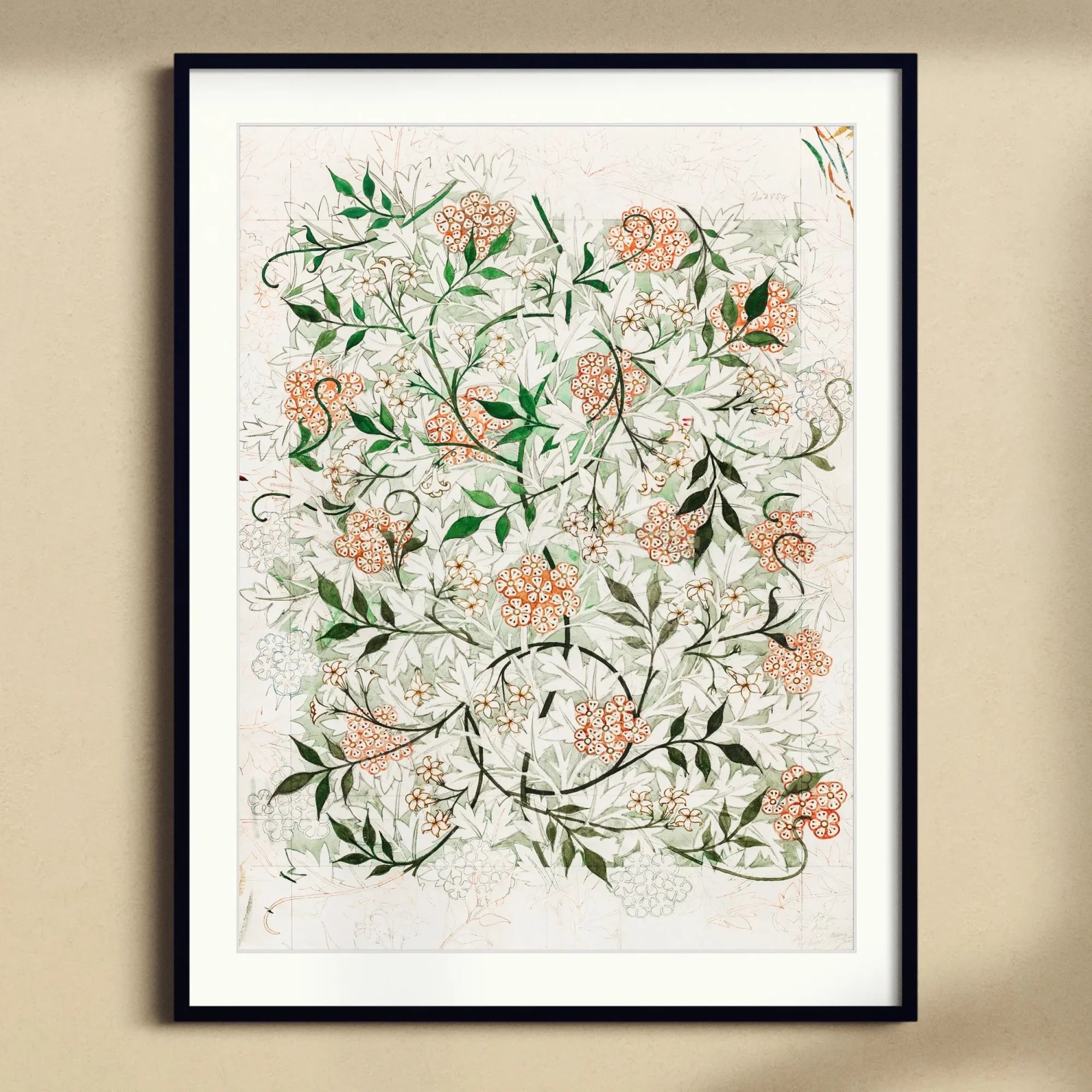 Entdecken Sie die botanische Verzauberung von William Morris '"Jasmine" in diesem verführerischen Kunstdruck.