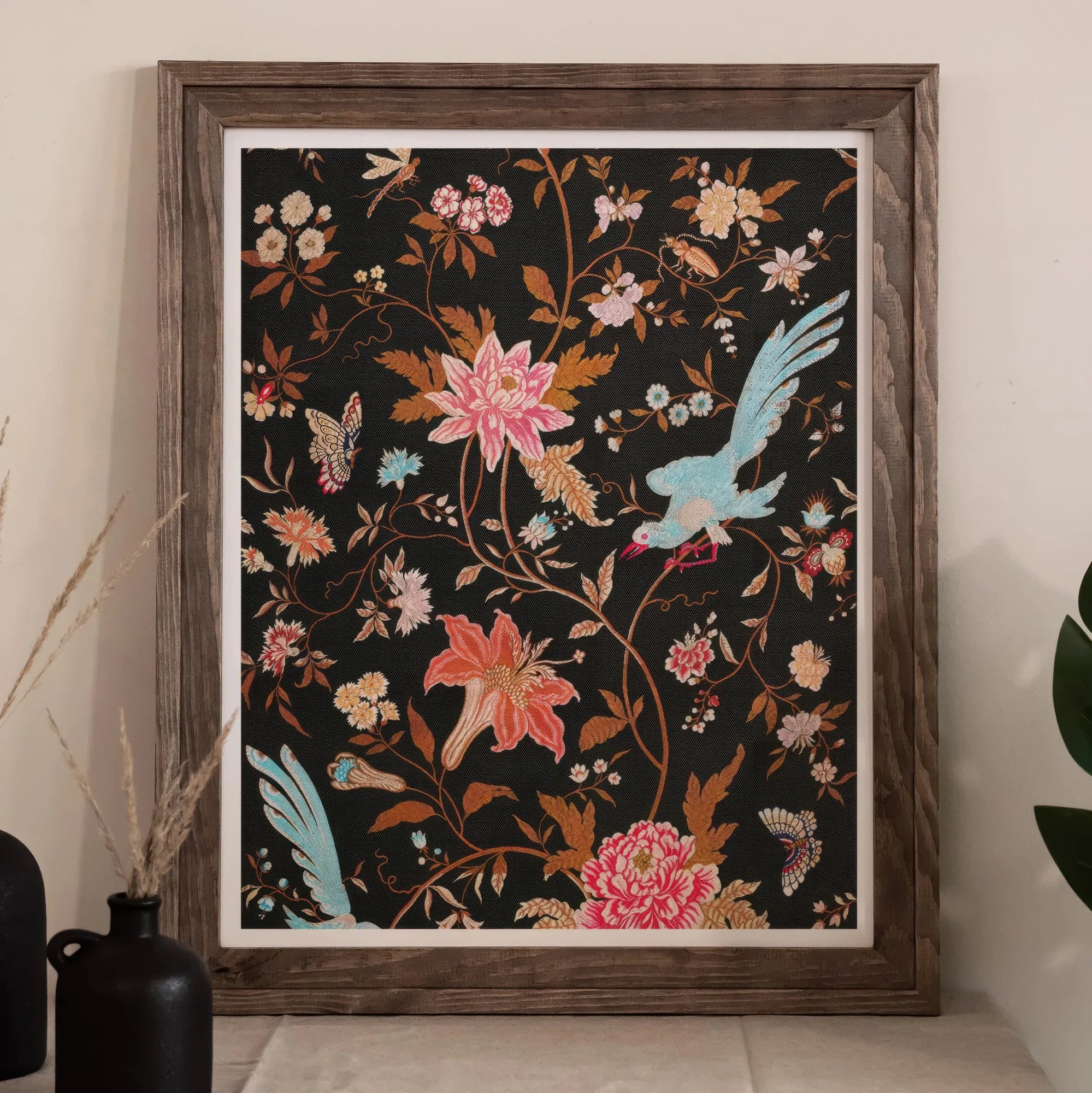 Siehe, eine wundersame Rebellion gegen viktorianische Angemessenheit, in der Ihre Mauern zu einer Bühne für die kühnste Burlesque der Natur werden. Dieses Textil des 19. Jahrhunderts Kunstdruck, "Mitternachtsanruf", verwandelt Ihren Raum in einen nächtlichen Eden, der machen würde William Morris erröten.