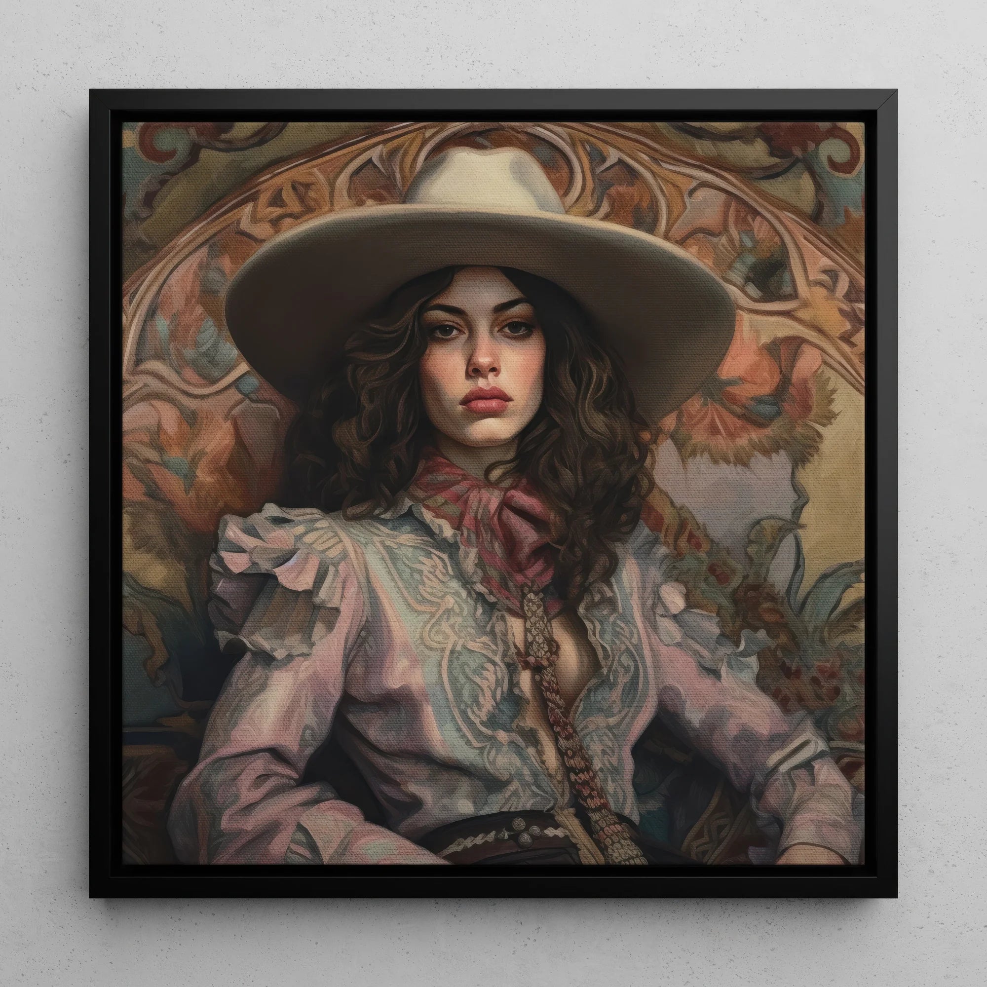 Diese queere Western-Wandkunst stellt nicht nur dar—sie erklärt. Sie erweckt die verlorenen Erzählungen von WLW-Ranchern, von Two-Spirit-Identität in der Cowboy-Kultur, von gestohlenen Blicken unter Stetsons in Geisterstadt-Bars. Ein feministisches Cowboy-Kunstwerk, das Raum fordert und Ihre Galerie-Wand mit dem ungezähmten Geist eines legendären Revolverhelden beherrscht.