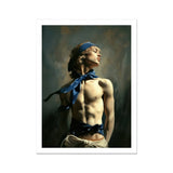 Der traumhafte Realismus seiner Welt vermischt sich mit roher Erotik. Eine Feier der queeren Männlichkeit, eingehüllt in Fantasie. Das Kunstwerk flüstert Geschichten von salzigen Brisen und fernen Küsten. Pinselstriche fangen das Licht ein, das auf straffen Muskeln spielt, und laden dich ein, die Reise nachzuzeichnen, die in jedem Muskelstrang eingraviert ist. Dieses schwule Femme-Wunder verbindet klassische Technik mit roher Sinnlichkeit. Es weckt Gedanken an mythische Reisen, sonnenverwöhnte Häfen und Beine, die sich um deine Taille schlingen.