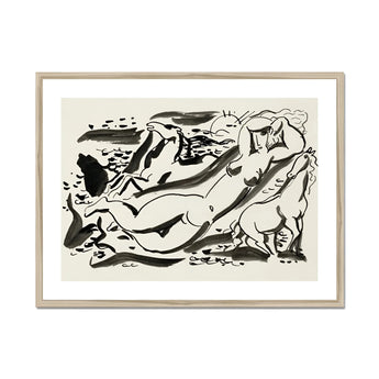 Gestels "Nackte Frau & Zwei Pferde mit dem Meer" zieht Sie in ein Reich, in dem Tinte in Träume übergeht. Dieses niederländische Leuchtfeuer des Expressionismus verschmilzt menschliche und pferdeartige Formen in einer ursprünglichen Meereslandschaft, jeder Pinselstrich ein Aufstand gegen künstlerische Konventionen.