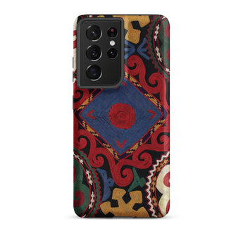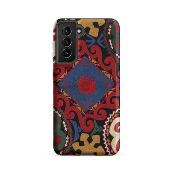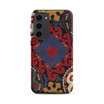 Diese Samsung-Hülle trägt ihr Erbe wie eine Rüstung. Sie hält nicht nur Ihr Gerät, sondern Jahrhunderte handwerklicher Fertigkeit, Marktplatz-Geschichten und die wirbelnde chromatische Energie der dauerhaften visuellen Sprache Zentralasiens.