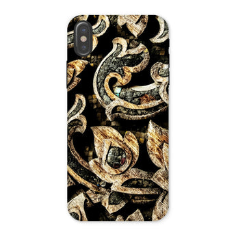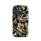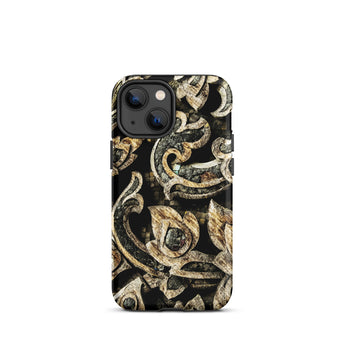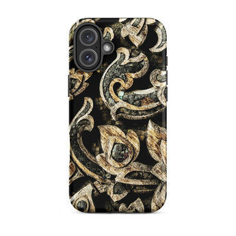 Das Against The Grain Ancient Thai Woodwork Art iPhone-Case verbindet modernste Technologie mit zeitloser Kunstfertigkeit und verwandelt Ihr Gerät in eine tragbare Galerie. Dieses Relikt des digitalen Zeitalters zeigt den Höhepunkt der thailändischen Holzschnitzkunst, seine Oberfläche ist eine lebendige Chronik jahrhundertealter Handwerkskunst. Komplexe, ineinandergreifende Wirbel - die den kosmischen Tanz buddhistischer Symbolik widerspiegeln - sind sorgfältig in die Fassade des Cases eingraviert.