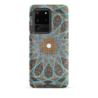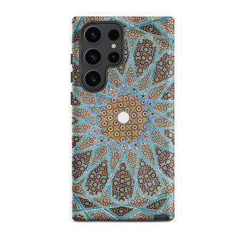 Glasierte Fayence schimmert neben verflochtenen Polygonen, Miniaturblüten und kobaltrahmigen Konstellationen, eine Hommage an die Safavid-Handwerker, deren Hände Mathematik in Schönheit verwandelten. Die Samsung-Hülle bewahrt diese persischen Muster mit gesättigter Präzision und rahmt Ihr Gerät im Rhythmus eines Ghazals ein.