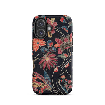 Dieses japanische textile schwarze Meisterwerk ist mehr als nur ein Schutzzubehör und dient als Galerie in Taschengröße. Lassen Sie Ihr Telefon zu einer Leinwand für dieses zeitlose Stück tragbarer Kunst werden und feiern das reiche Erbe des japanischen Grafikdesigns und der Textilhandwerk.