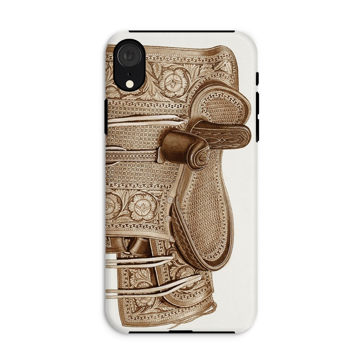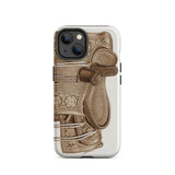 Ein Relikt des sattelgebundenen Glanzes, diese Reitkunst iPhone-Hülle verwandelt Ihr Gerät in ein Artefakt der verfeinerten Reitkunst. Frank C. Barks' meisterhafte Darstellung eines handgefertigten Ledersattels spricht von einer Ära, in der handwerkliche Kunstfertigkeit auf unnachgiebige Anmut traf. Jedes detaillierte Blumenmotiv, jede geprägte Kurve erzählt eine Geschichte der Reittradition, von Reitern, die in Eleganz posieren und durch nebelverhangene Felder gleiten.