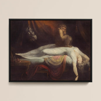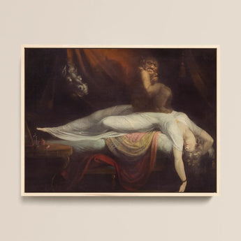 Die Nacht drängt sich eng um das Bett. Der schlaffe Körper einer Frau glänzt gegen den samtigen Dunst; an ihrer Kehle sitzt ein Inkubus, sein Blick reptilisch, seine Form sowohl Tier als auch Gewissen. Jenseits der Falten des scharlachroten Stoffes steigt ein gespenstisches Pferd ins Blickfeld, die Augen rollen in stummer Alarmbereitschaft.