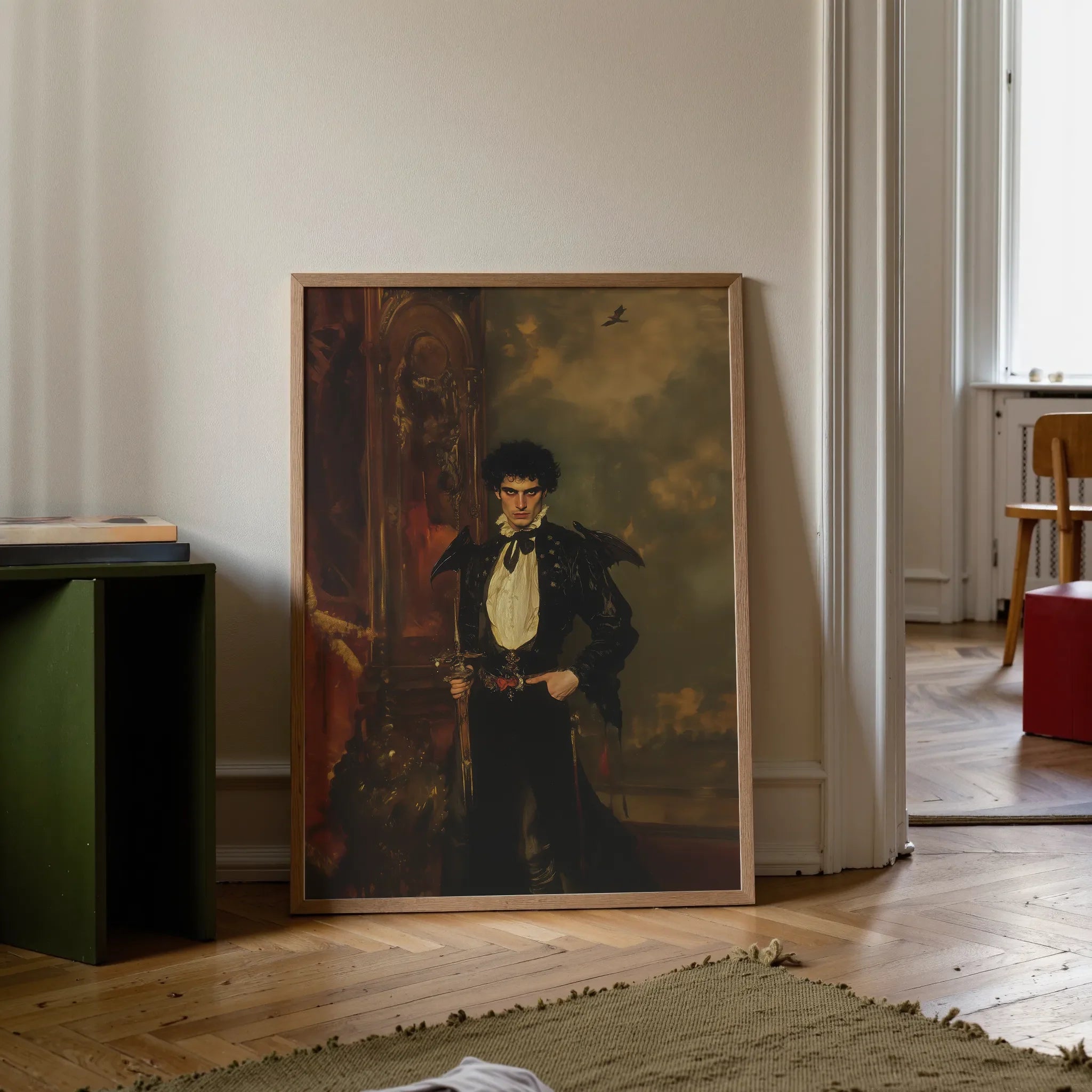Dieses dunkle Fantasy-Vampirporträt zieht dich in eine gotische Traumlandschaft, in der schwule Vampir-Mythologie und hispanische kulturelle Tiefe sich verweben, um etwas mehr als nur einen Druck zu schaffen. Armand ist nicht nur ein Vampir — er ist ein Symbol des ewigen Konflikts, balancierend auf der Messerkante zwischen Erlösung und Verdammnis, Liebe und Verlust, Identität und Überleben.