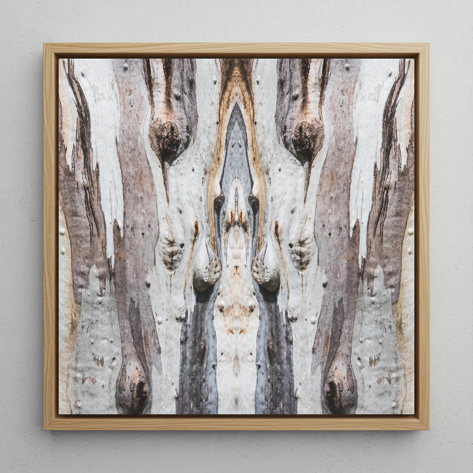 "Wahnsinnig bellen" trippy Baumstamm -Leinwand transzendiert nur eine botanische Darstellung. Bieten Sie eine hypnotische Reise in das Herz der baumlosen Abstraktion. Das gerahmte Leinwand erhöht die australische Baumrinde zu surrealistischen Höhen und schafft eine Rorschach-ähnliche Symmetrie, die die Wahrnehmung in Frage stellt.