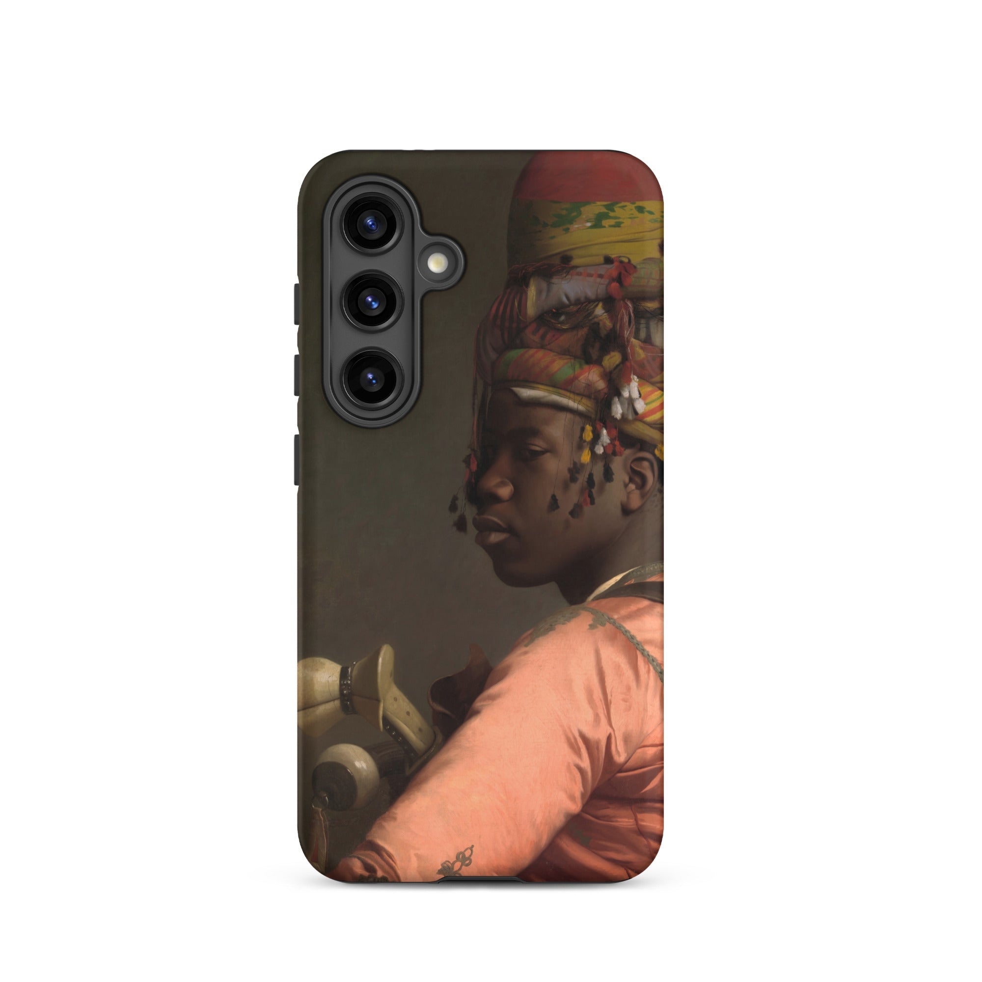 Diese Samsung-Hülle wird zu einer tragbaren Galerie. Orientalistische Porträtkunst trifft auf moderne Technologie. Ihr Bild trägt die Eleganz der Salons des neunzehnten Jahrhunderts in Ihre Tasche. Während die Haltung des jungen Mannes Anonymität verweigert.