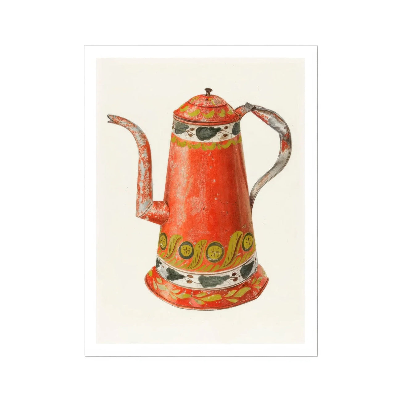 Bereiten Sie sich darauf vor, von Harry Grossens bezaubernde Küche aus den 1930er Jahren zu vermerken Kunstdruck. Diese lebendige Blechkaffeekanne wird bald ein Kronjuwel in Ihrer kulinarischen Leinwand sein.