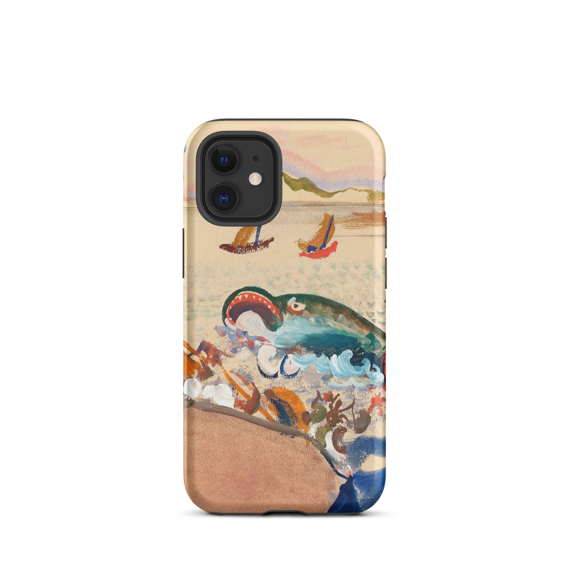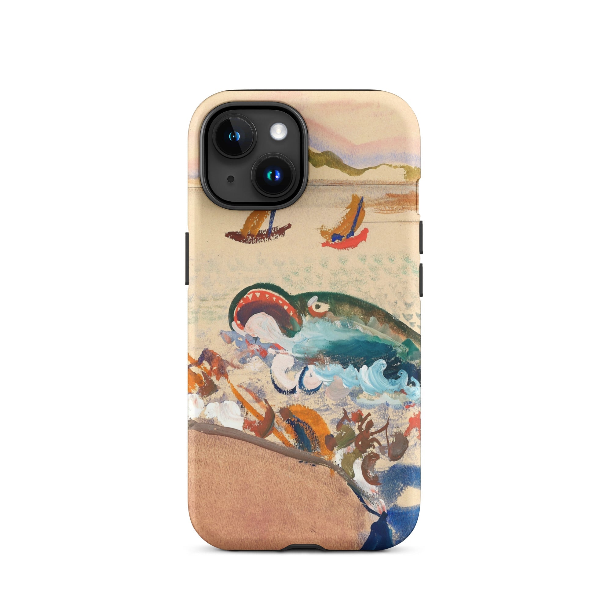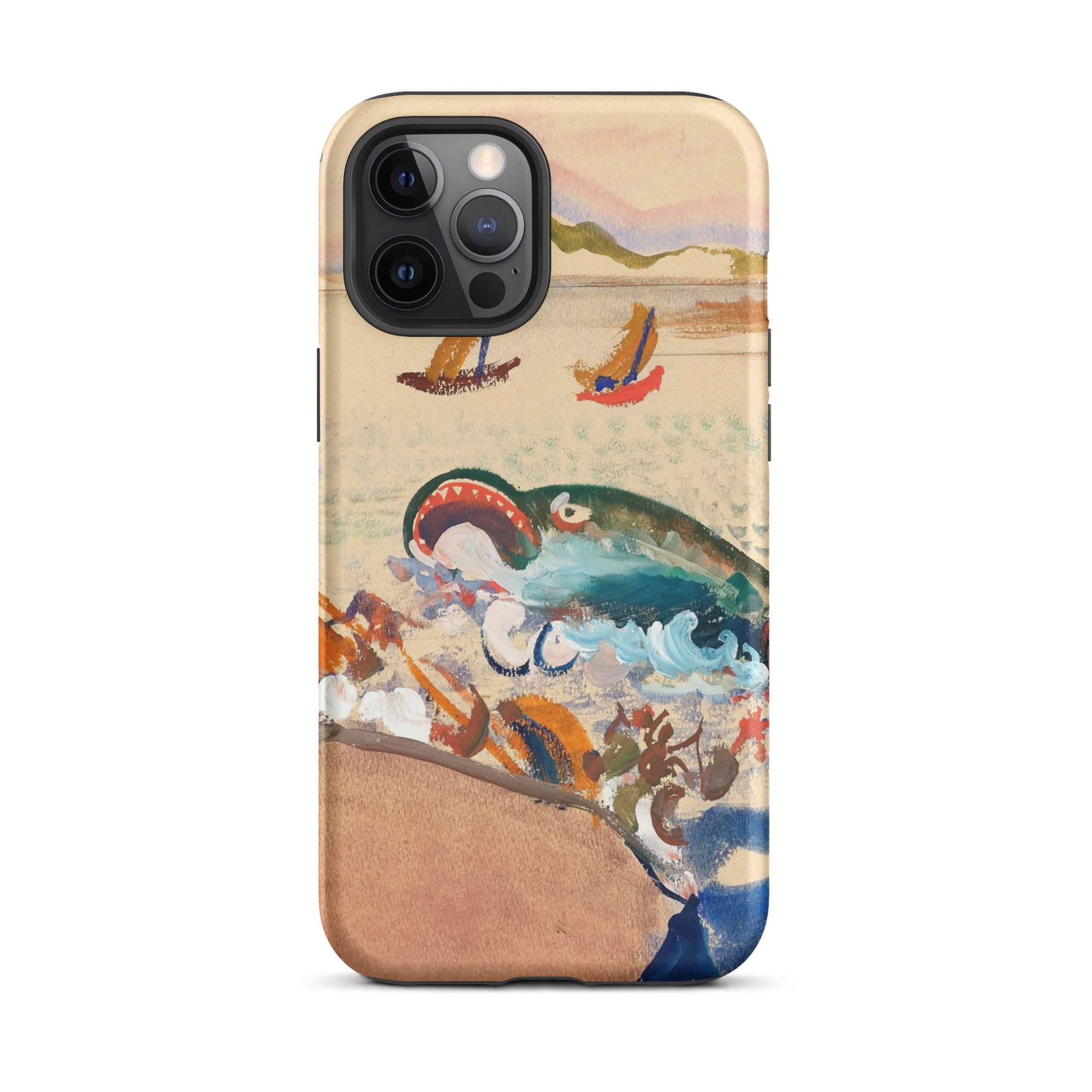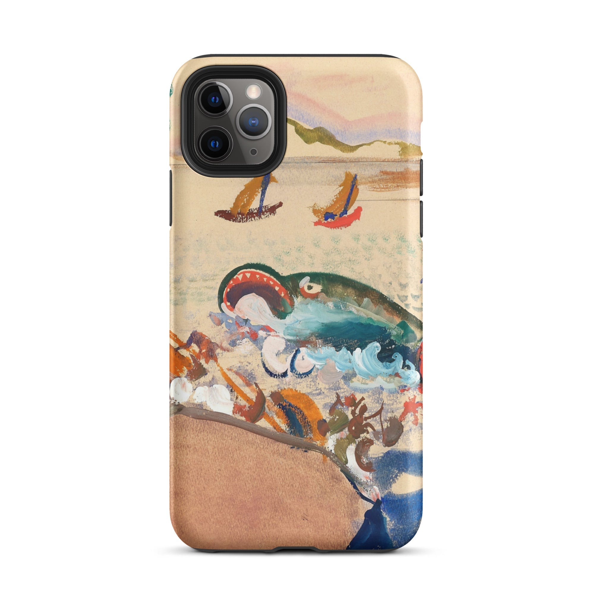 Der Wal ist ein türkisfarbener Koloss, der die bufffarbene Stille durchbricht, seine scharlachroten Kiefer weit genug aufgesperrt, um Segelboote, Seeleute, die Gewissheit selbst zu verschlingen. Oskar Laske malt Der Wal als Parabel, die sich zum Spektakel entwickelt: Bernsteinbesetzte Schiffe rasen auf das klaffende rote Innere zu, während sich azurblauer Schaum um zersplittertes Holz dreht.