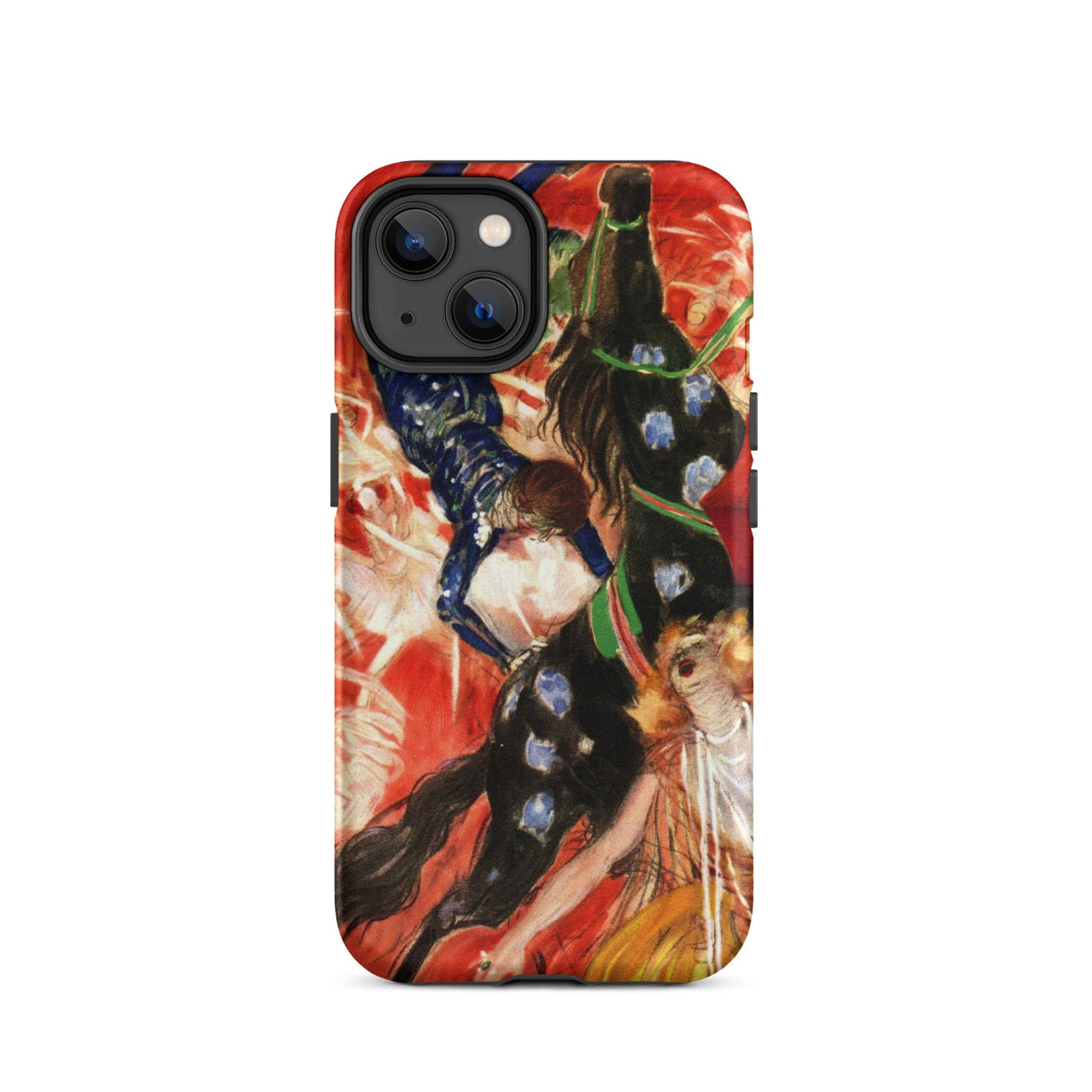 Dieses Leonetto Cappiello iPhone-Case flüstert nicht Nostalgie – es schreit sie durch ein Megafon des expressionistischen Zirkuschaos, wo wilde Pferde durch Farbstürme springen und Regenschirme zu Waffen des ekstatischen Überlebens werden. Sie halten kein Handyhülle; Sie greifen ein Fragment der Pariser Kabarettkultur, von den Wänden des Montmartre der 1900er Jahre gerissen und in Ihrer Handfläche wiedergeboren.