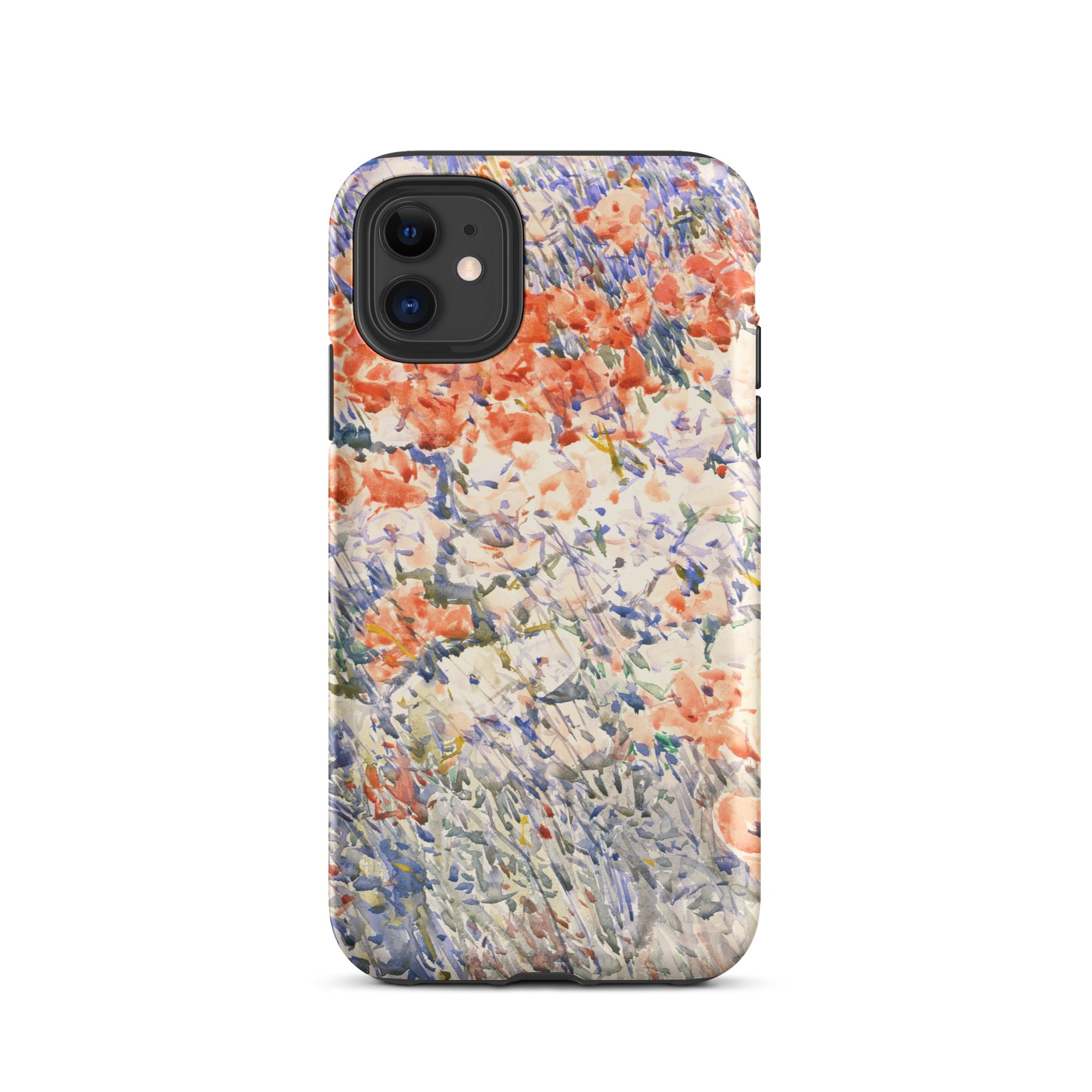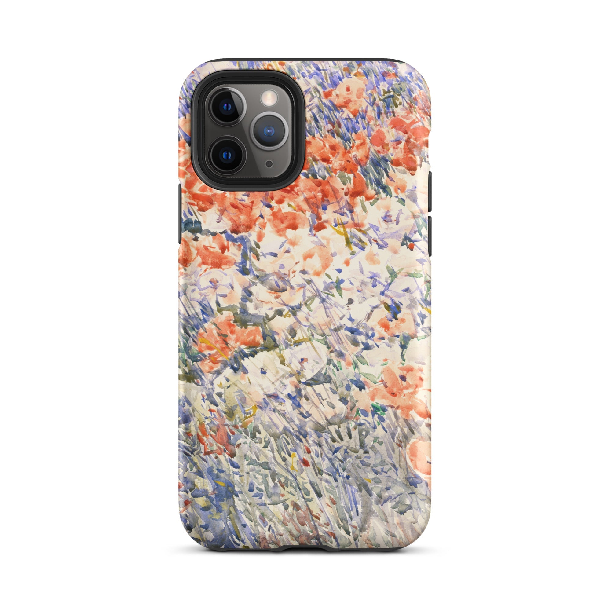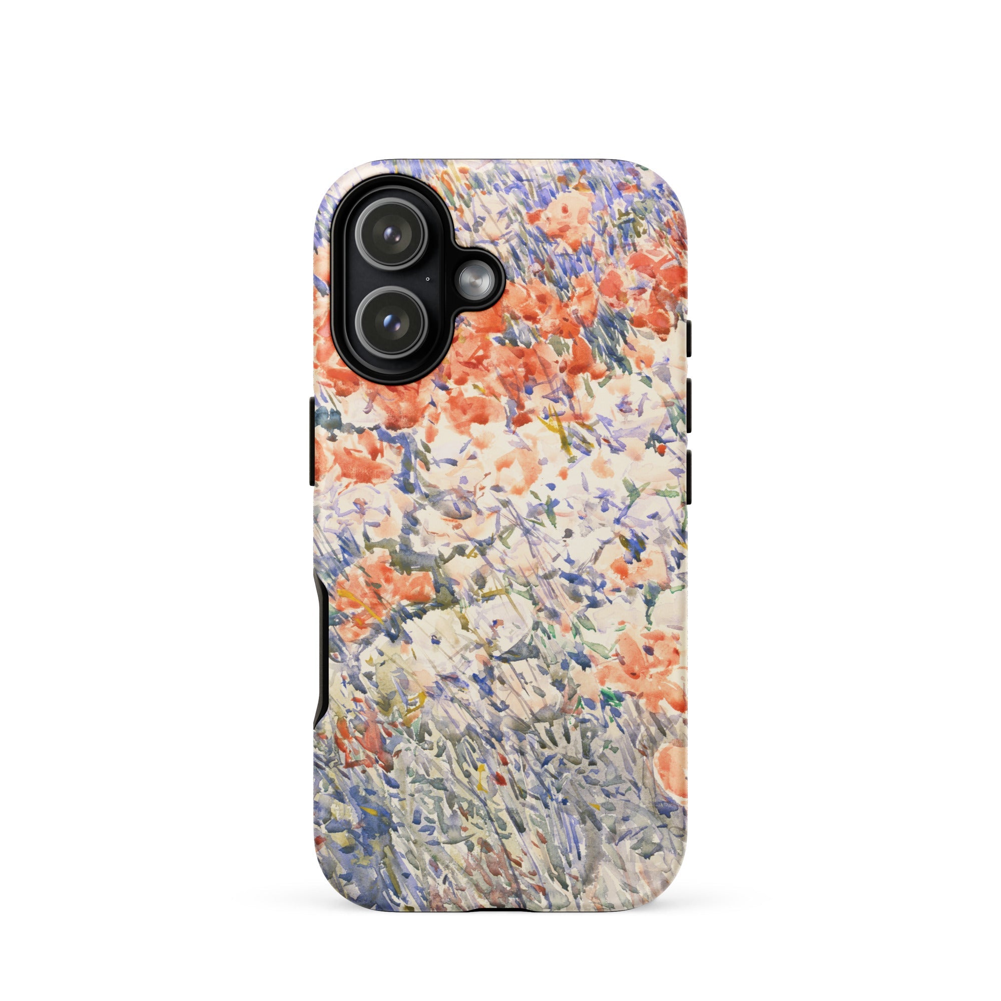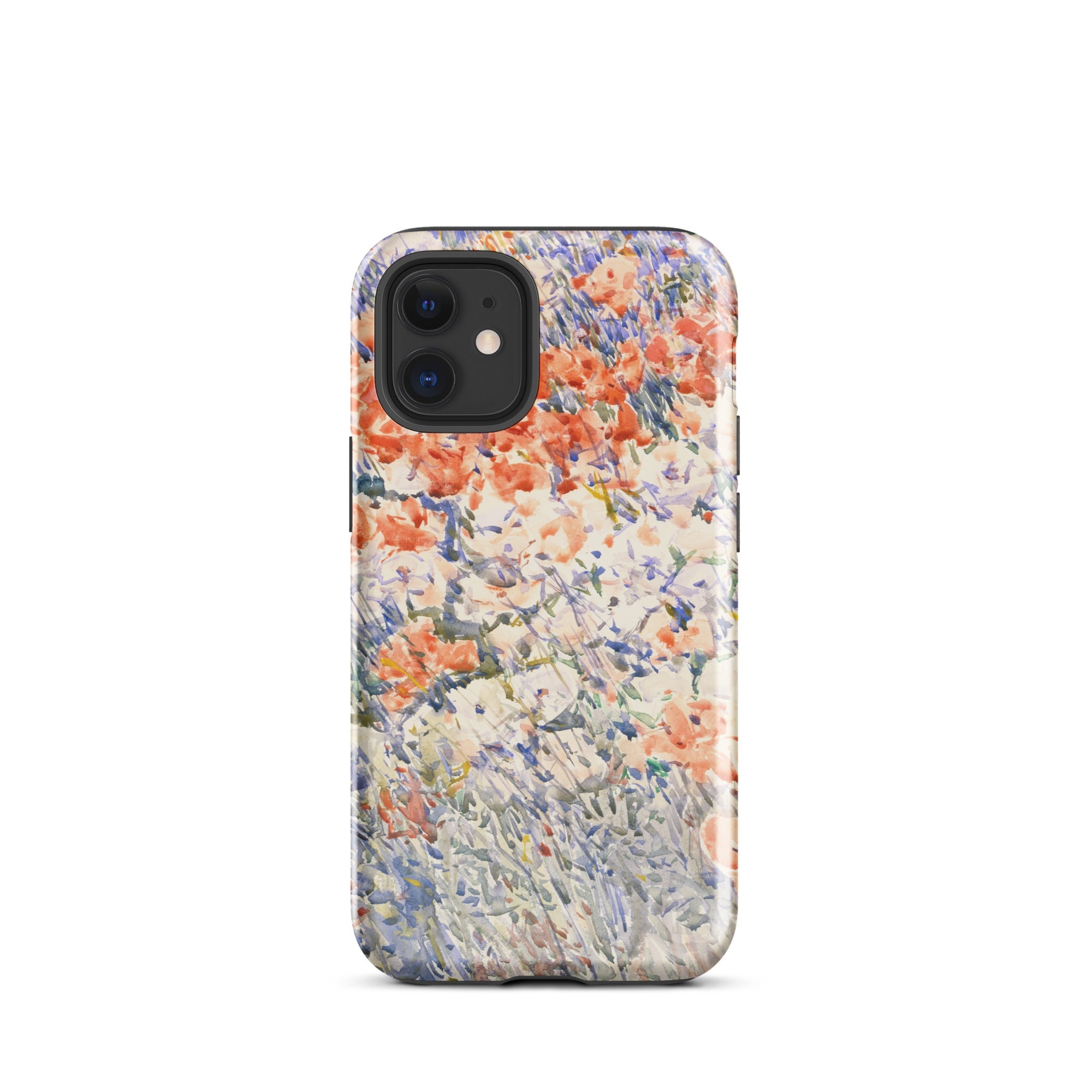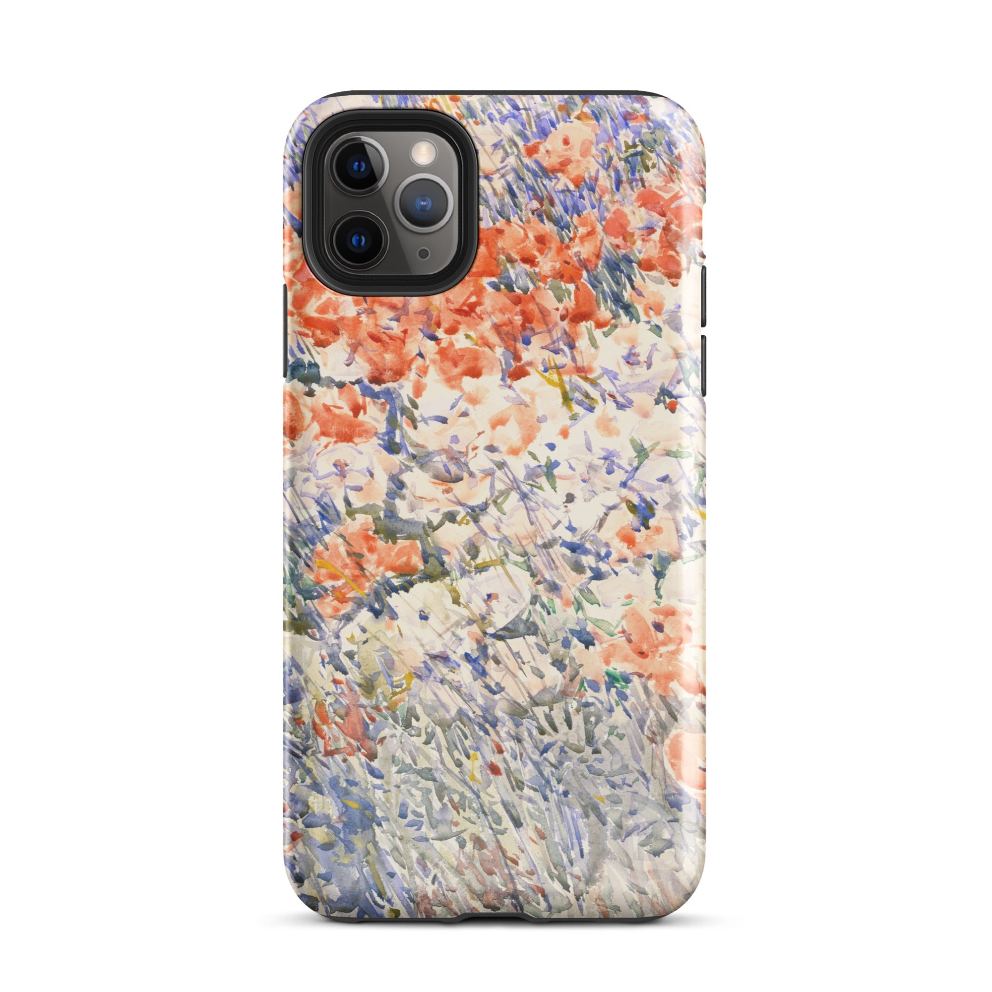 Celia Thaxters Isles of Shoals Garten lieferte das Motiv; Hassams flüssiger Pinselstrich verlieh ihm seinen Atem. Ritterspornstängel erheben sich durch olivgrüne und schiefergrüne Wirrungen, lavendelfarbene Akzente sammeln sich dort, wo nasses Pigment nasses Papier fand. Kein Weg, keine Figur, kein Rahmen—die Komposition besteht auf botanischer Totalität. Gedruckt auf einer Handyhülle trägt diese Freilichtstudie den Duft des Atlantiks im August, jeder Farbton durchtränkt vom Licht New Hampshires.