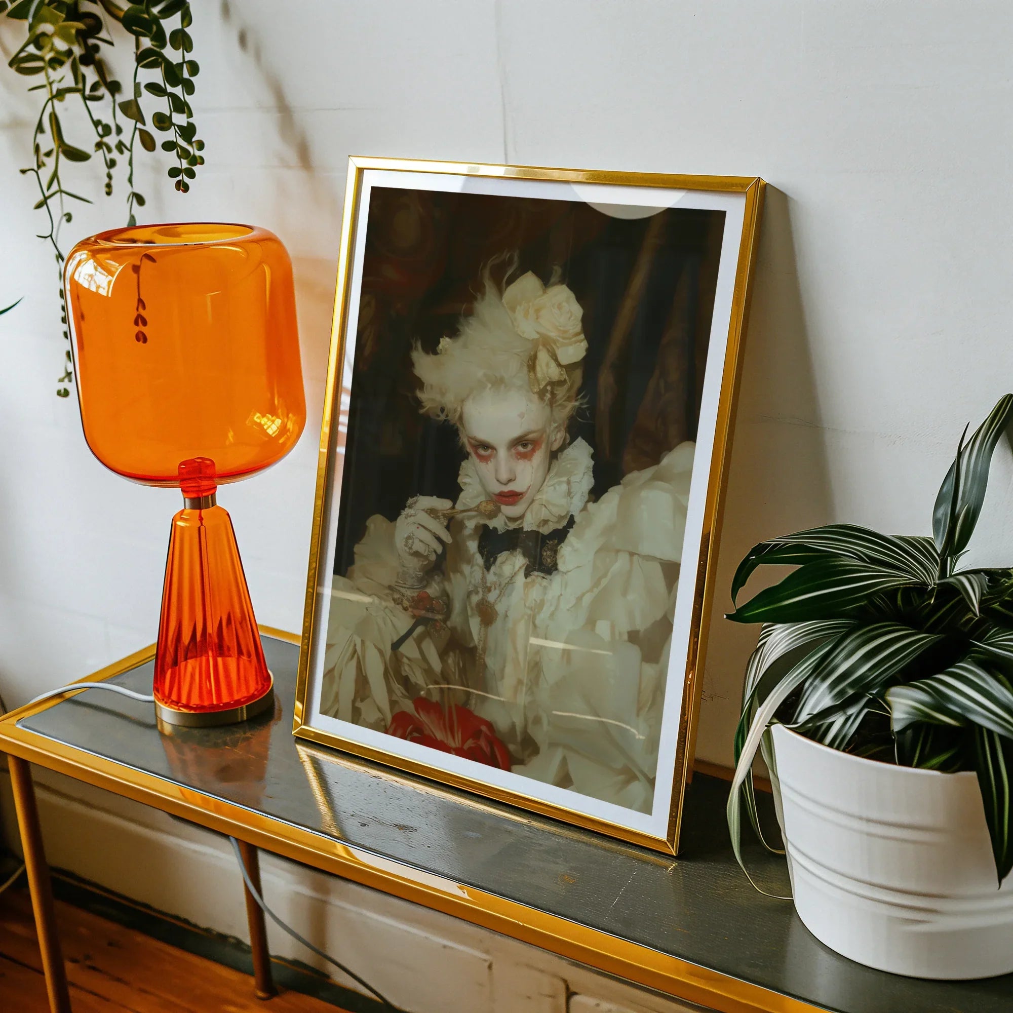 Er wartet in extravaganter Spott auf Sie Barock Opulenz. Sich in seinem Überschuss erwürgen. Schichten von cremefarbenen Rüschen und schwerer, elfenbeinfarbener Spitze wickeln sich wie das Leichentuch der Toten über Paris um seinen Körper. Sein verzierter Schmuck-angesaugt und dekadent-drückt ihn tiefer in eine unsichtbare Hölle, während es das Kerzenlicht fängt. Knochendünner Finger und unheimlich ausgeglichen, einen vergoldeten Löffel mit zartem Griff umklammert. Jeder Leck verraten die darunter laute Gewalt.