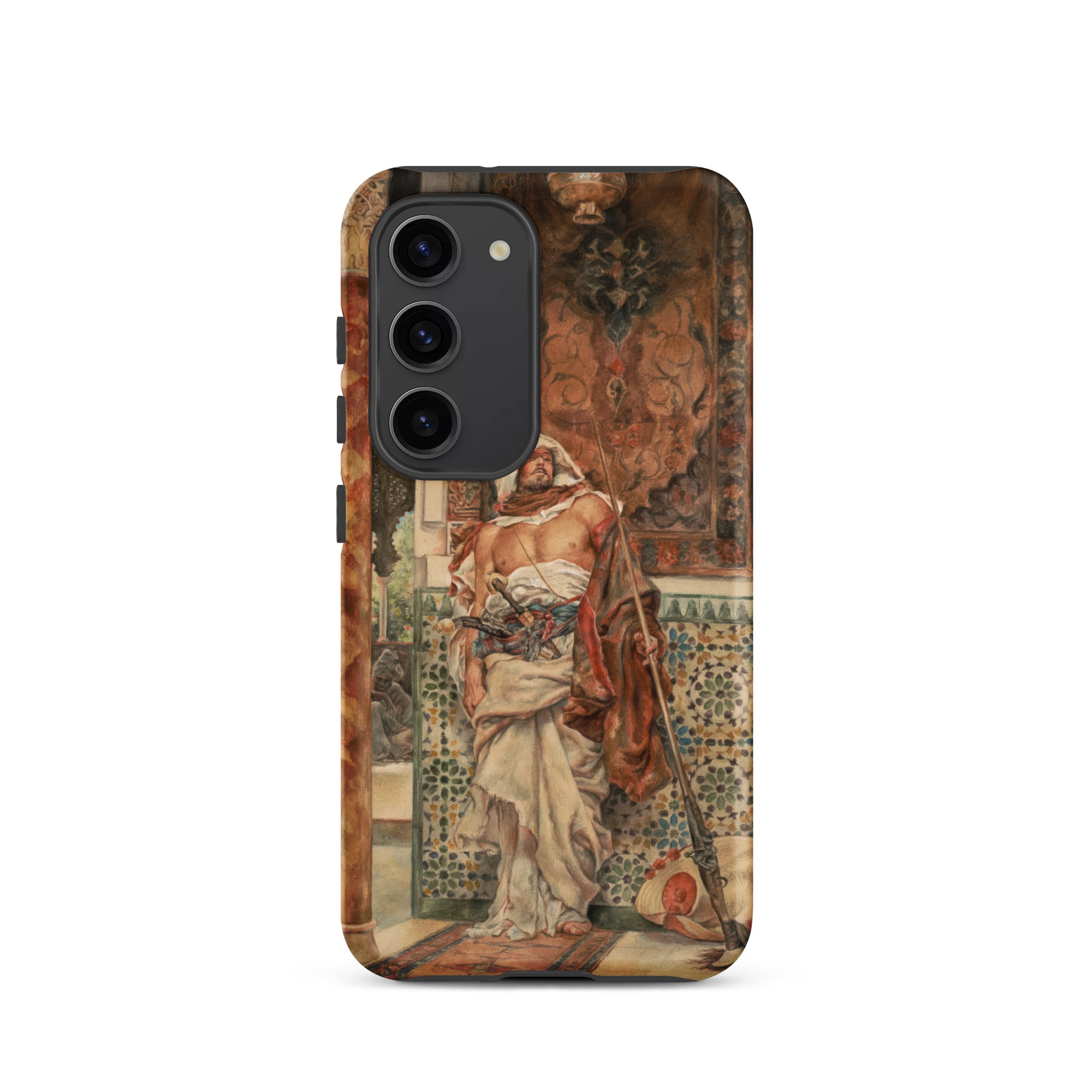 Diese Samsung-Hülle verwandelt Fabrés' orientalistische Pinselstriche in tragbare Architektur, rahmt islamische Bögen, Stuckverzierungen und den Körper eines Kriegers, der in die ornamentale Stille der Geschichte gedrückt wird.