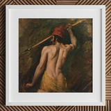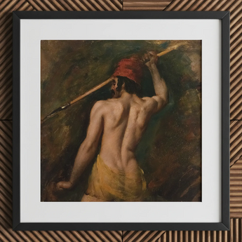 In "A Greek Sklave" von William Etty dominiert der rohe, muskulöse Rücken eines Mannes, der in der Mitte der Bewegung gefangen wurde, die Leinwand, seine Sehne straffen mit der Spannung der bevorstehenden Aktion. Die Chiaroscuro seines Fleisches gegen einen dunklen, turbulenten Hintergrund betont das Drama und erinnert an ein Gefühl historischer Gravitas und existenzielles Gewicht.