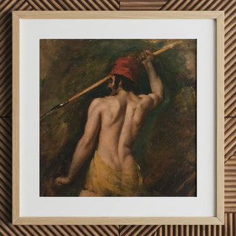 In einem zerfetzten gelben Lendenschurz und mit einer lebendigen roten Kappe gekrönt, verkörpert er eine starke Mischung aus Sicherheitsanfälligkeit und Trotz. Ettys meisterhafte Pinselarbeit mit seinen fließenden Strichen und strukturierten Schichten bringt eine viszerale Unmittelbarkeit in die Szene und fängt die tragische Würde der versklavten Figur ein.
