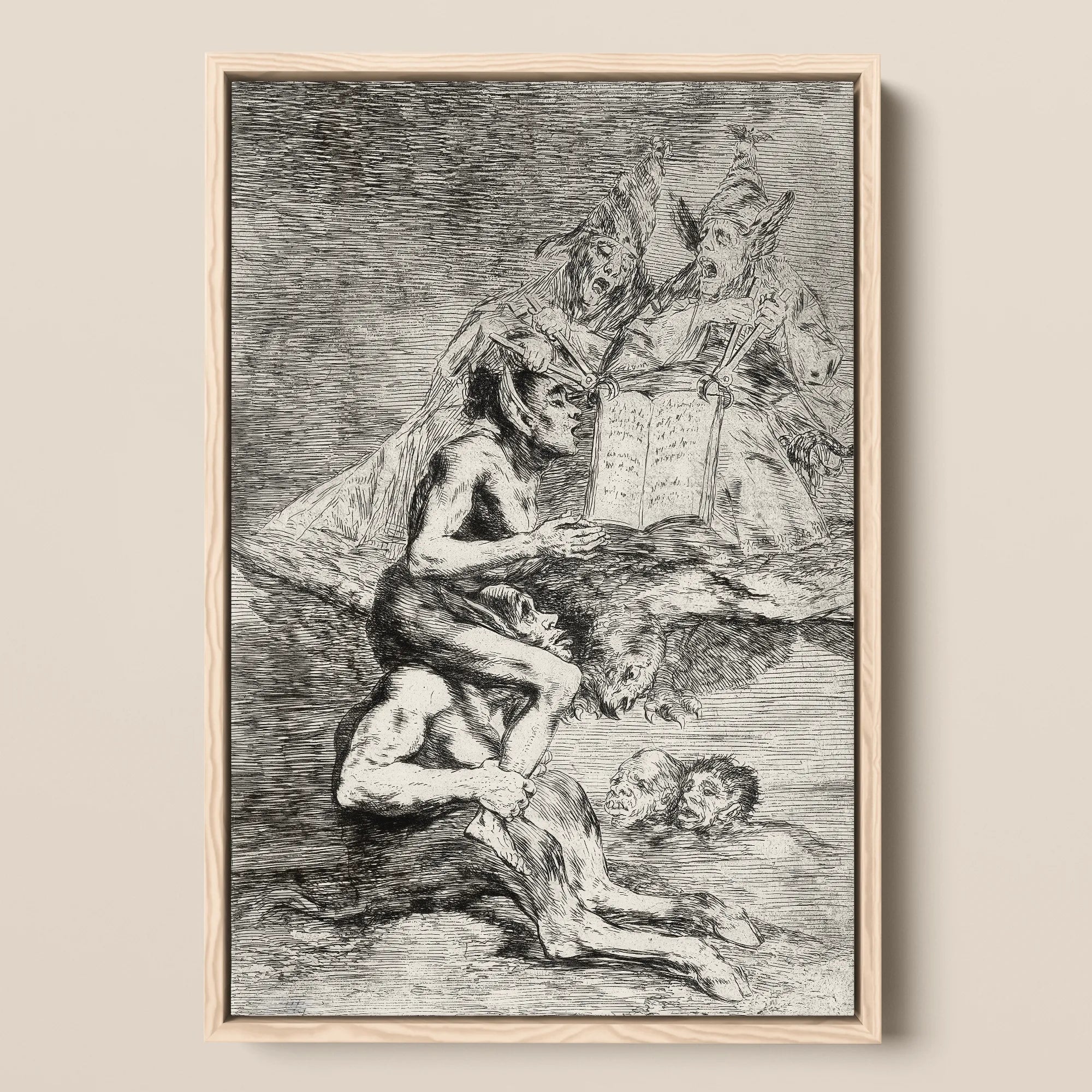 Dieser Kunstdruck verkörpert das Paradox, das Goya meisterte - Mitleid verwoben mit Verurteilung, Vernunft zitternd im Chaos. Der Gesang der Hexe verweilt wie Rauch, eine Erinnerung daran, dass Blindheit schön klingen kann, wenn der Chor groß genug ist.
