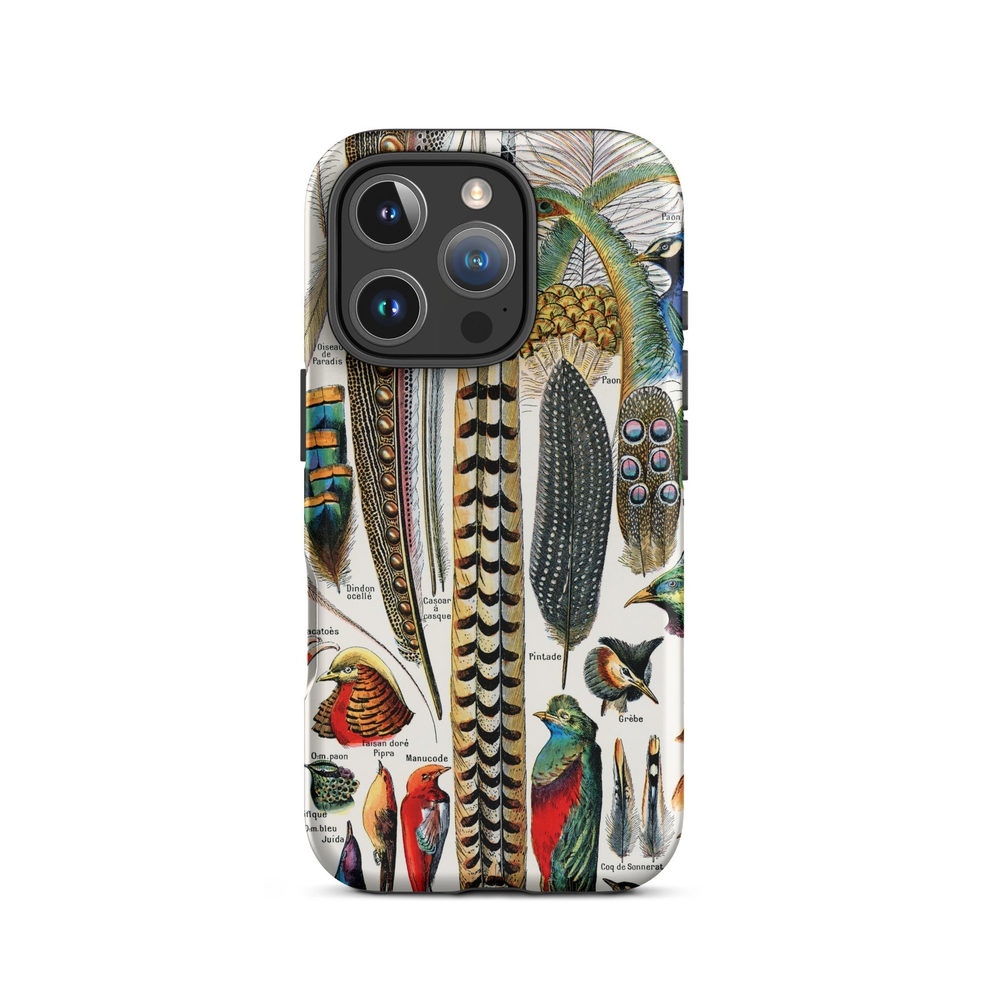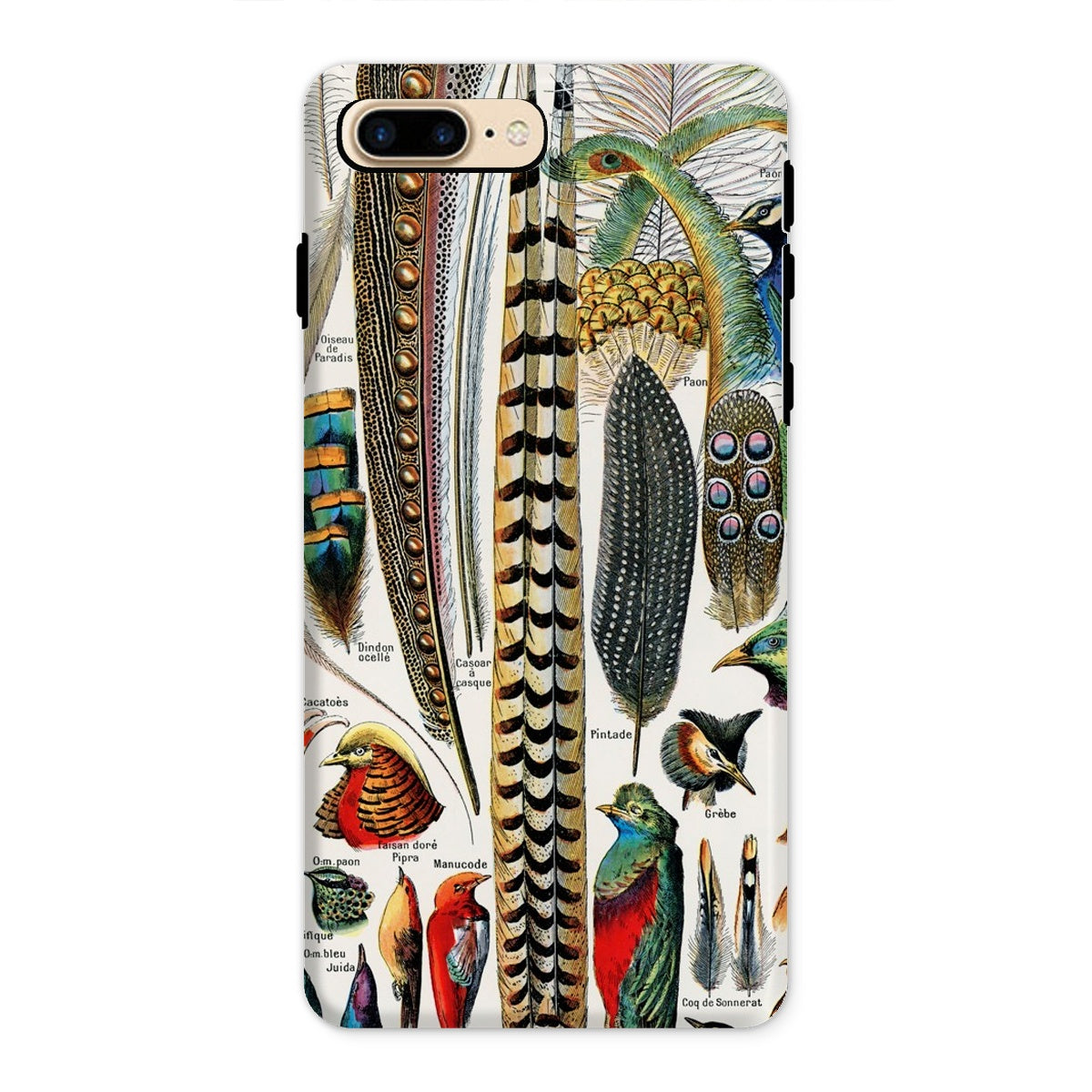 Millots exquisite Liebe zum Detail fängt die subtile Bänderung des Perlhuhns und die luxuriöse Feder des Straußes ein. Dieses Case ist nicht nur dekorativ; es ist lehrreich. Jedes akribisch beschriftete Exemplar – vom prächtigen Argus bis zum bescheidenen Felsenhahn – verwandelt Ihr Telefon in ein tragbares Naturkundemuseum.