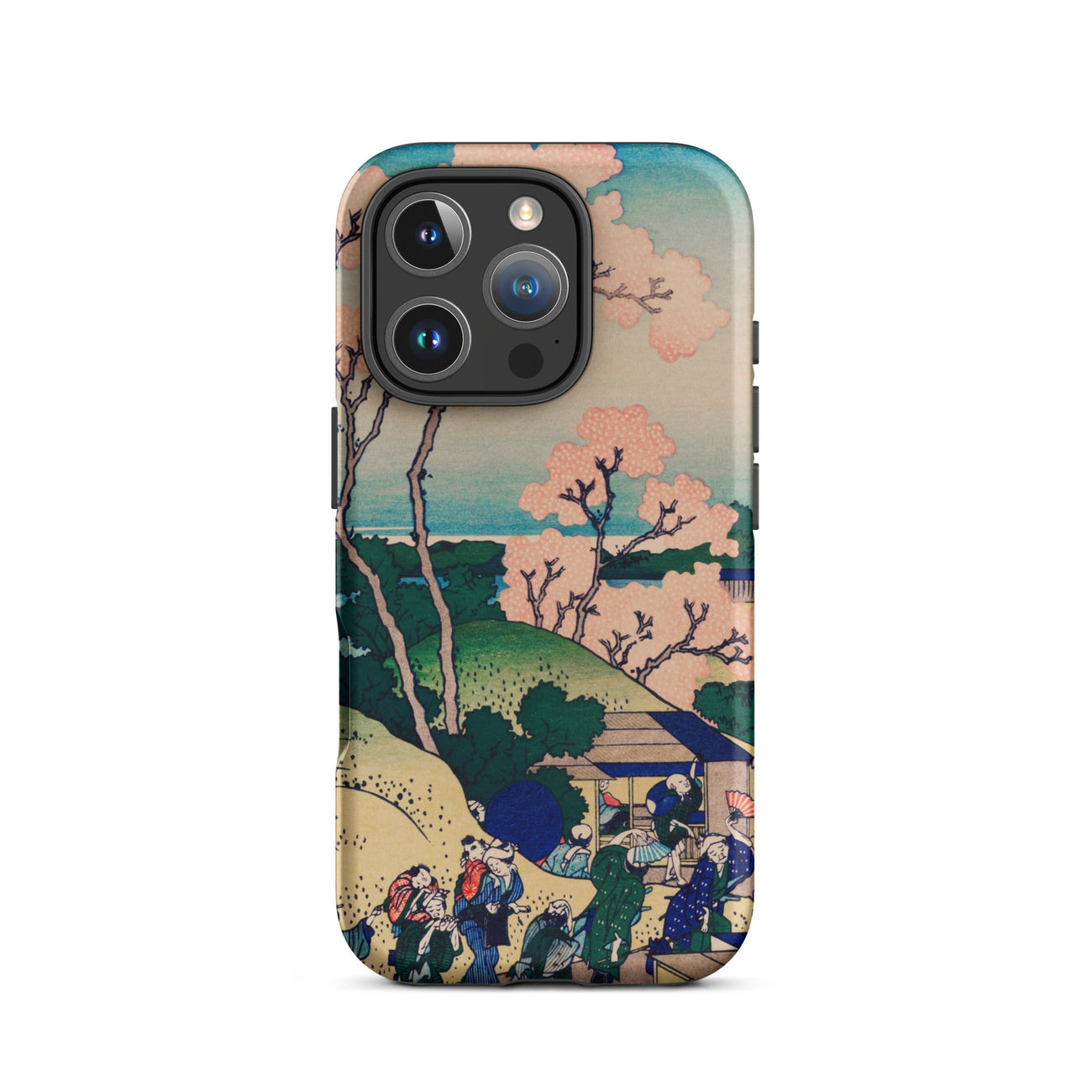 Hokusai friert diesen Edo-Frühling am Rande der Bewegung ein. Auf deiner iPhone-Hülle ist es keine Nostalgie—es ist Kompression. Jahrhunderte in Zellulose gebogen. Blütenblätter wie Atem. Jeder Ärmel und Sandale bewahrt durch Pigment und Papier.