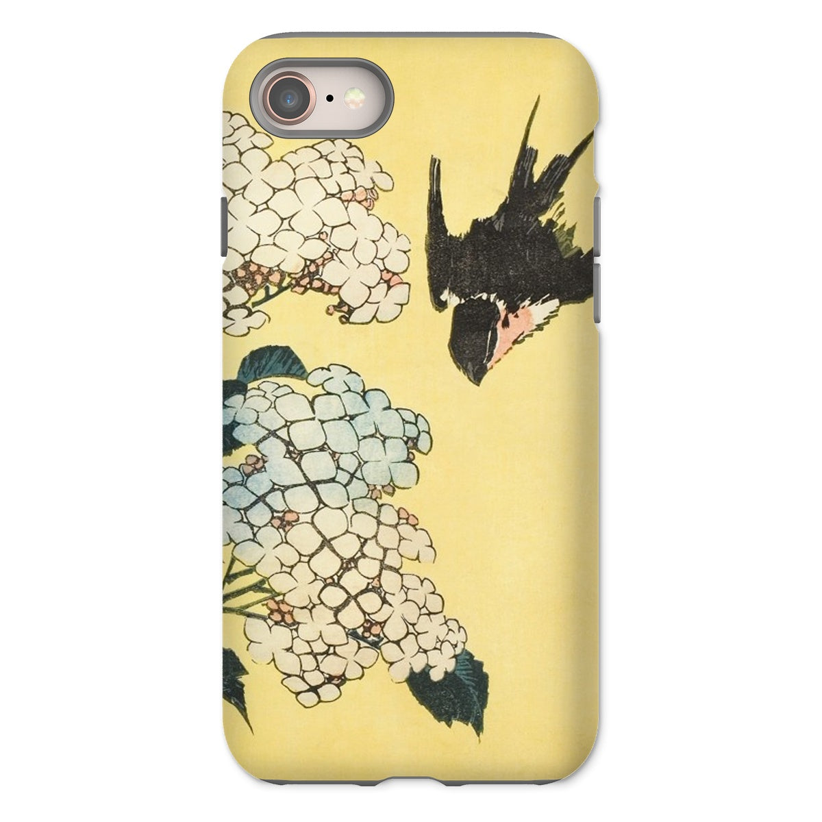 Umschließen Sie Ihr iPhone mit Hokusais "Hortensie und Schwalbe" ukiyo-e Brillanz mit diesem avantgardistischen Case. Dieses Meisterwerk aus seiner späten Karriere (ca. 1833/34) verwandelt Ihr Gerät in ein taschengroßes Meisterwerk der Edo-Zeit.