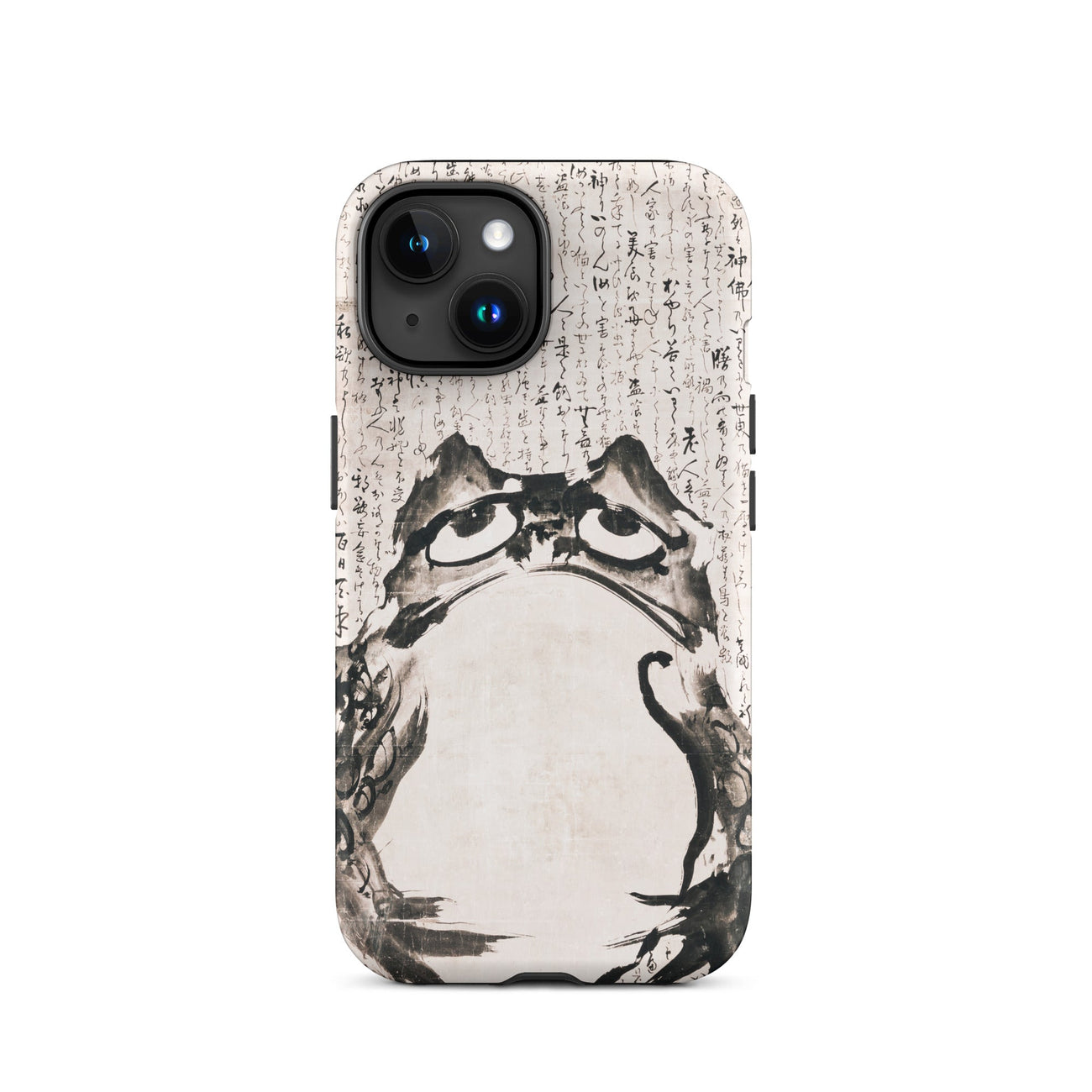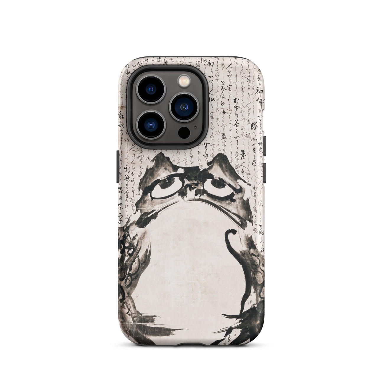 Er bläht sich nicht mit Atem auf, sondern mit Prophezeiung. Der mit Tinte gespülte Frosch von Getsuju sitzt unter einem Monsun von Kanji, schwebend in der Stille eines unvollendeten Strichs. Jedes Glied—aus der Sumi-Stille gezogen—strotzt vor pinselgeborenem Gewicht. Diese hervorstehenden Augen? Sie flehen nicht. Sie bezeugen. Sie sagen voraus.