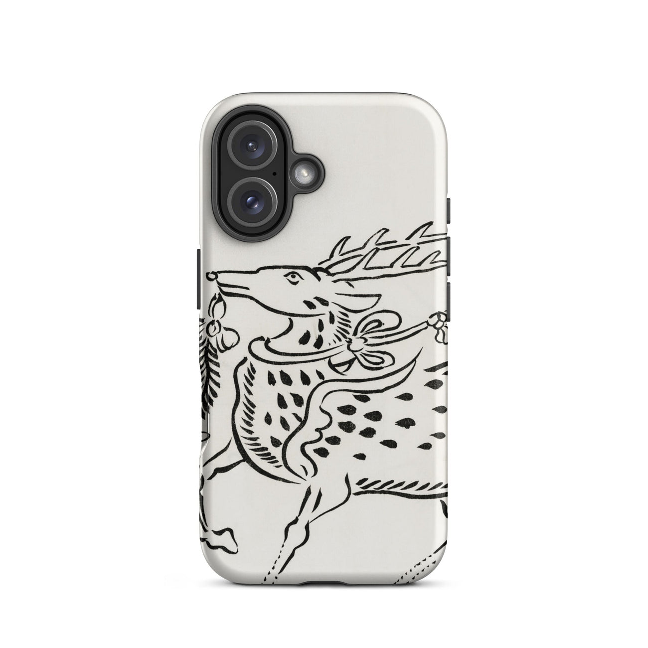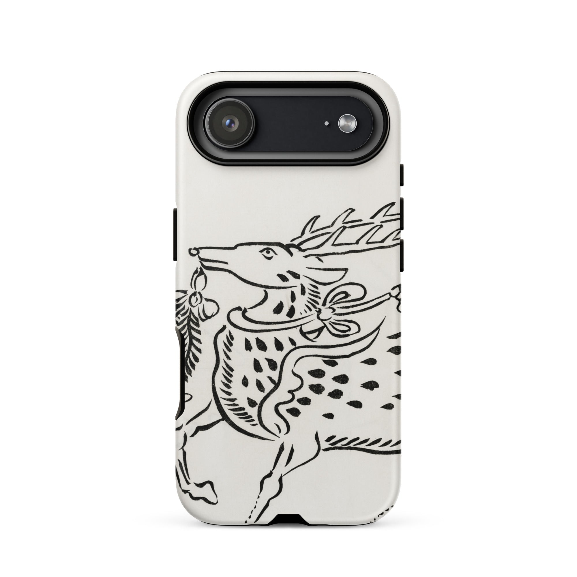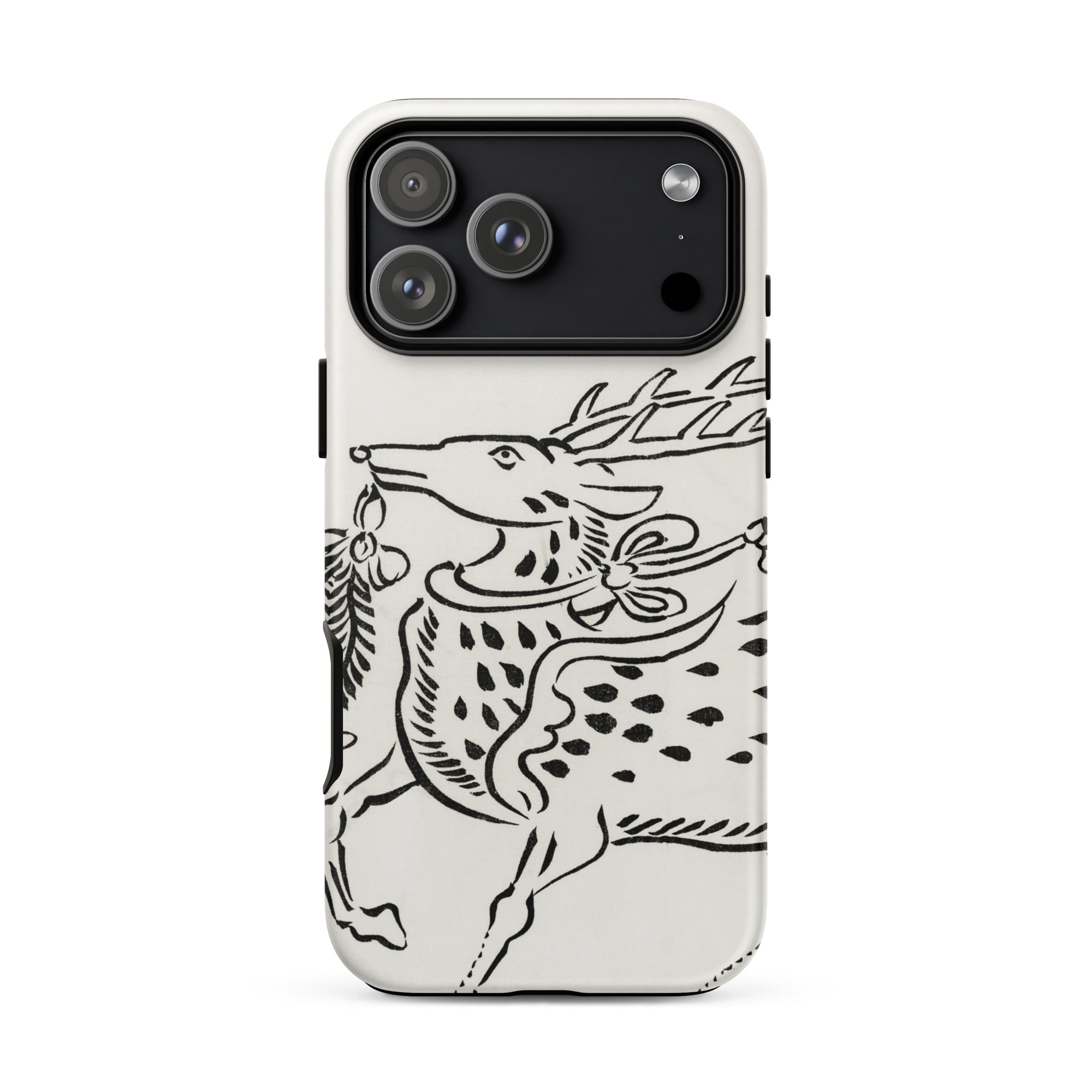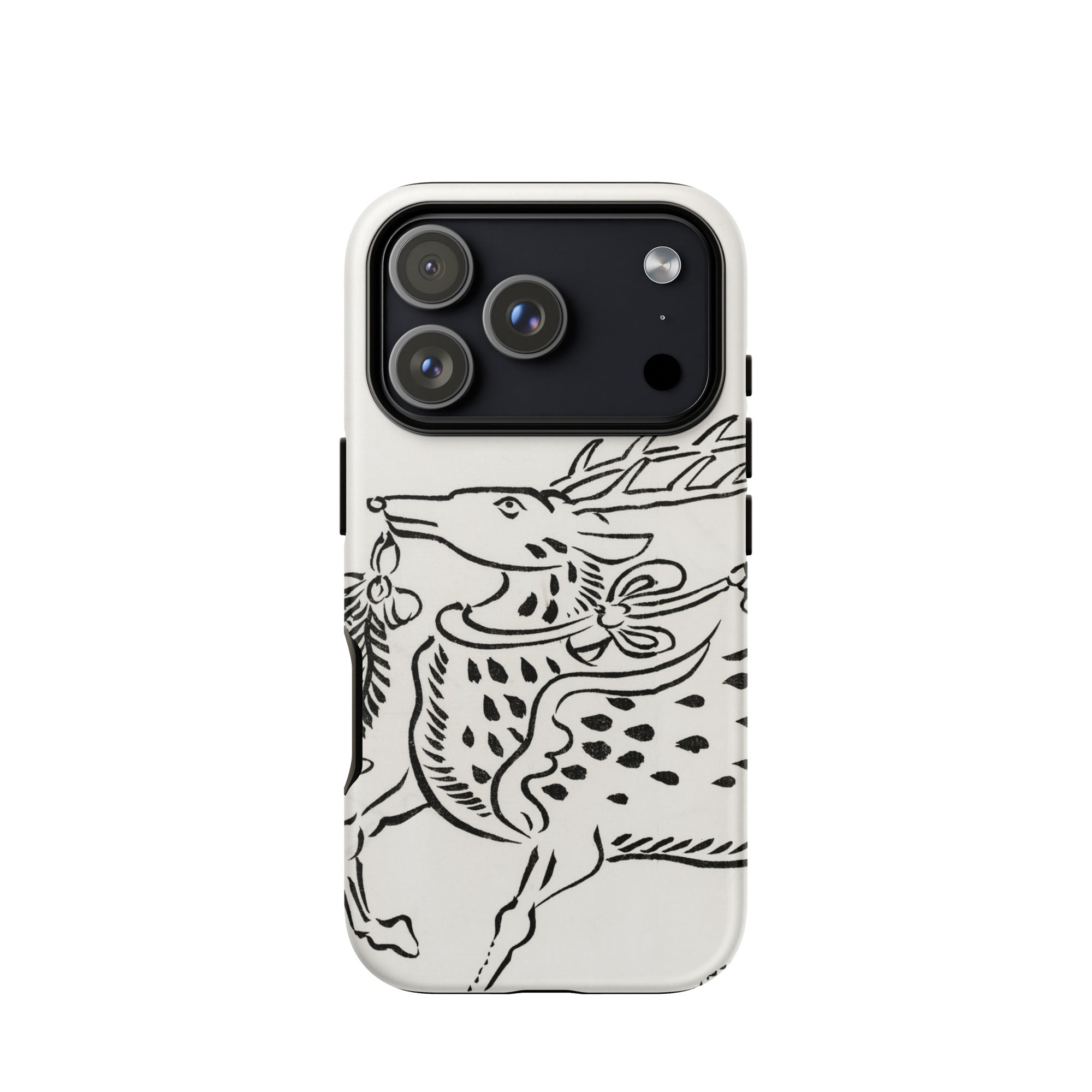 Siehe da, eine iPhone-Hülle, die über bloßen Schutz hinausgeht. Sie betrachten ein Stück Edo-Periode-Eleganz, neu interpretiert für Ihren digitalen Taschenbegleiter. Taguchi Tomokis meisterhafte Pinselstriche tanzen über diese schlanke Leinwand und erwecken einen alten japanischen Hirsch zum Leben.