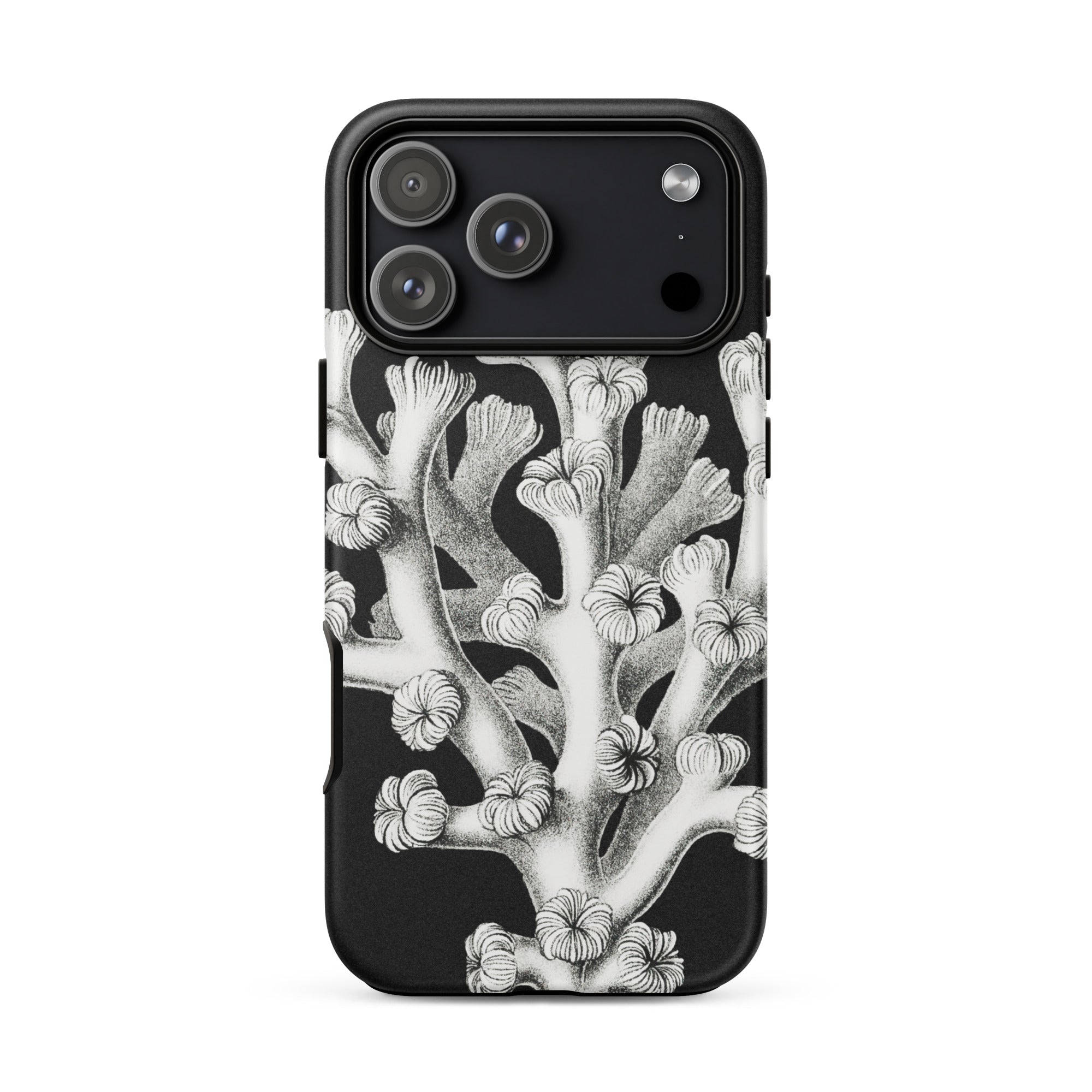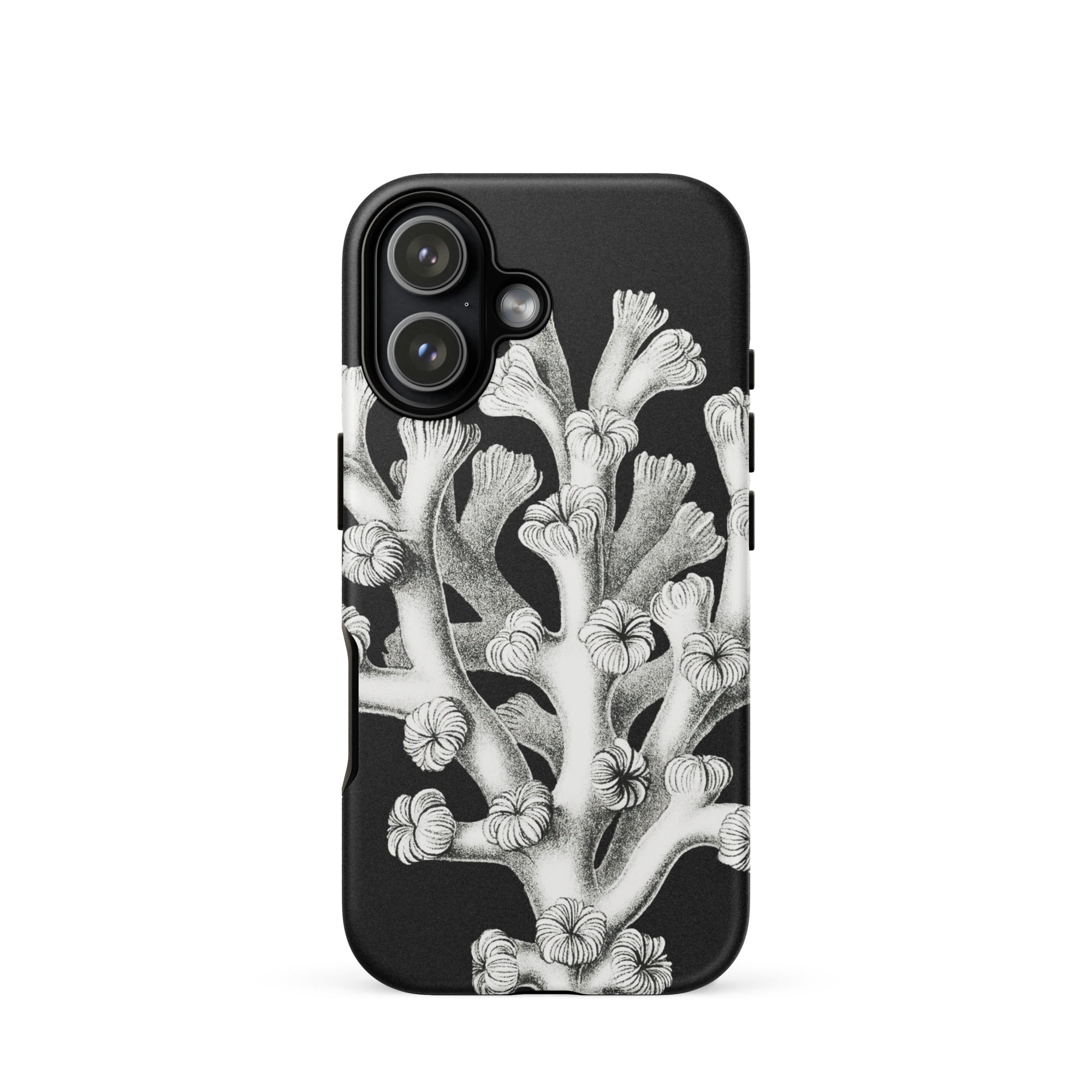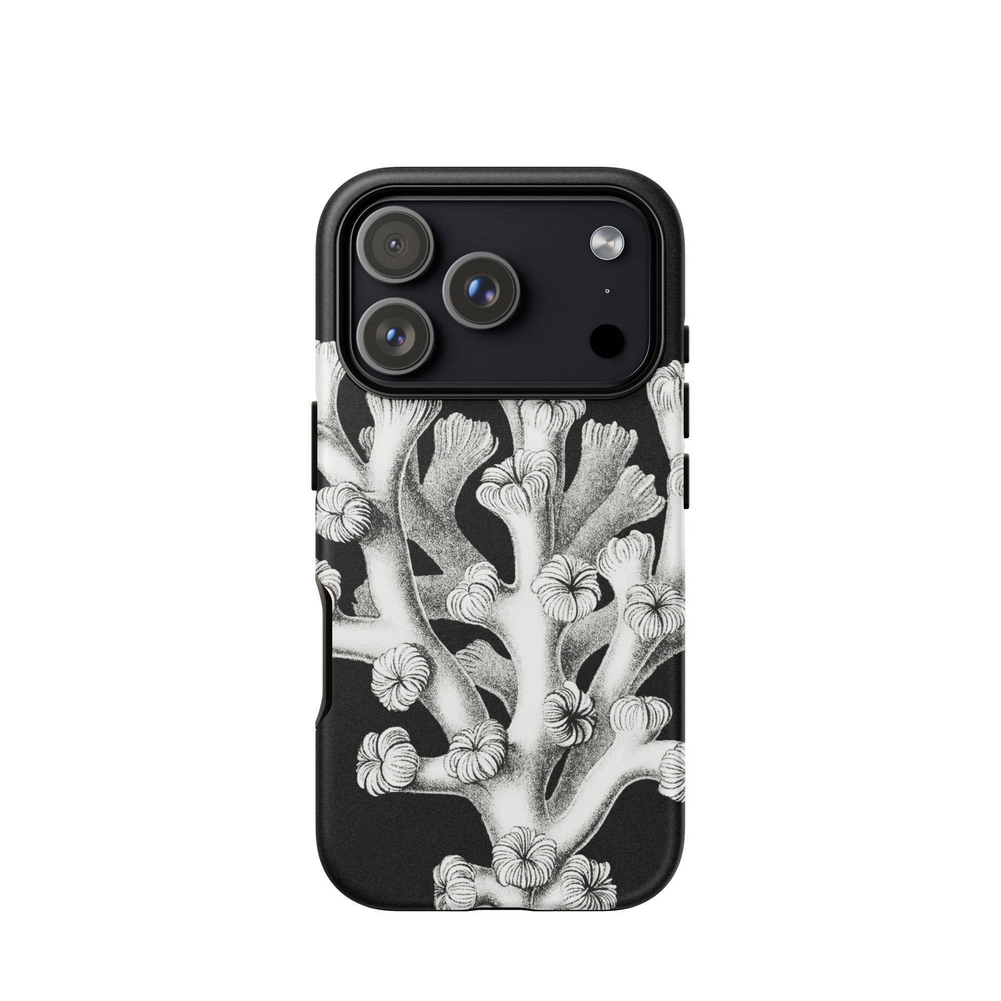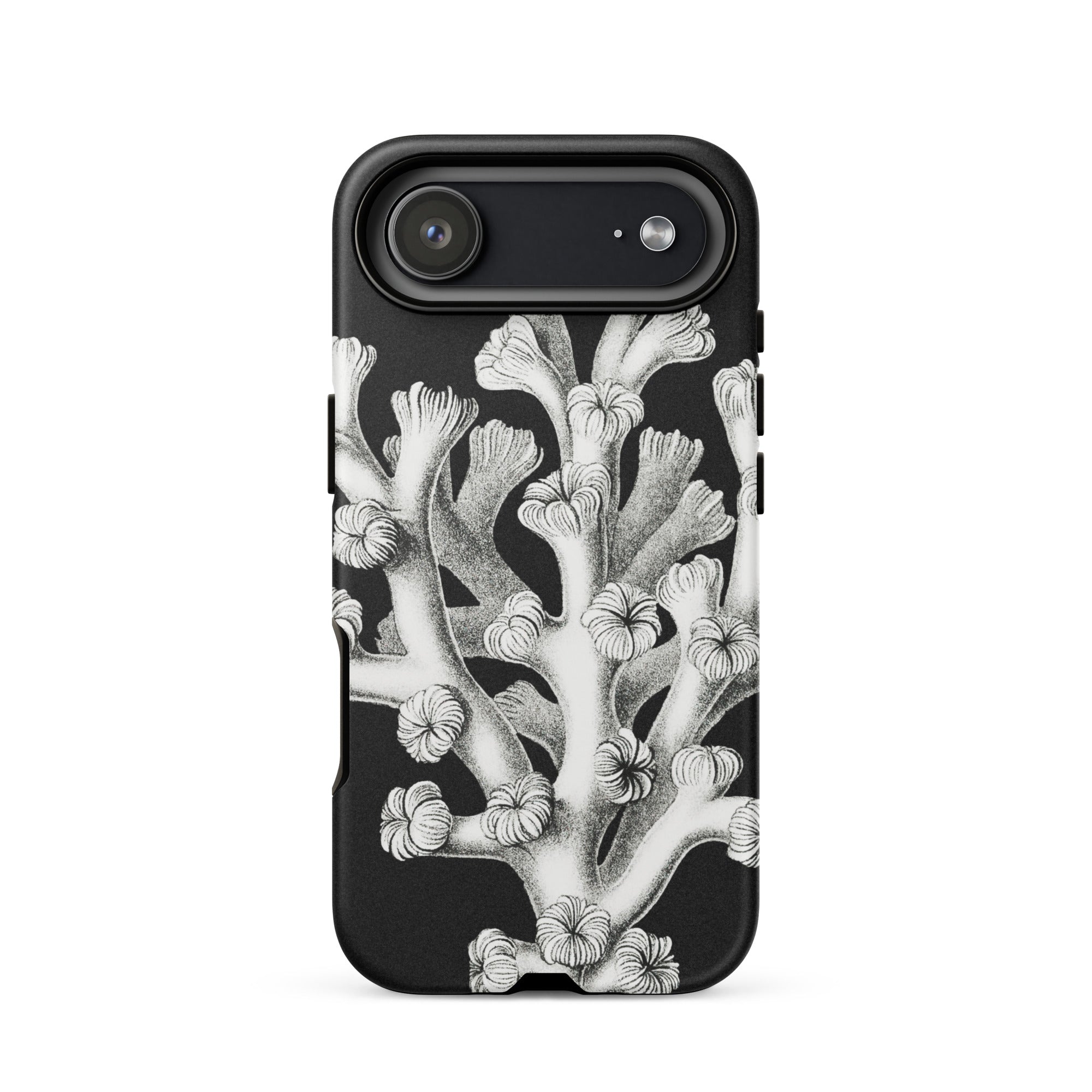 Ein Relikt der Tiefe, wo Wissenschaft und Kunst in stiller Konversation verschmelzen. Diese Ernst Haeckel Koralle iPhone-Hülle enthüllt die skelettierte Poesie der Tiefe—ein kompliziertes, monochromes Riff, eingefroren in der Zeit. Die Vintage-Meereslebewesen Handyhülle schöpft aus Haeckels meisterhafter Präzision und verwandelt biologische Komplexität in schlichte Eleganz. Jeder verzweigte Ast, jeder zarte Polyp entfaltet sich wie eine uralte, sonnenlose Blüte.