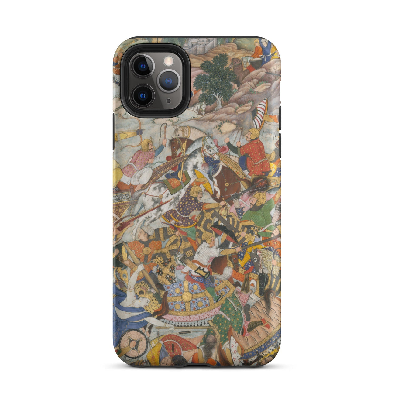 Dieses Handyhülle ist ein Portal zum zeitlosen Epos des Mahabharata, wo Geschichte und Mythologie sich verweben. Jeder Pinselstrich hallt die Meisterschaft der persisch-mughalischen Manuskriptillumination wider, mit ihren juwelentönigen Pigmenten, hypnotischen Details und himmlischer Pracht. Von den bestickten Textilien bis zum tumultartigen Nahkampf pulsiert die Szene mit rhythmischer Intensität—ein eingefrorener Moment kosmischen Schicksals.