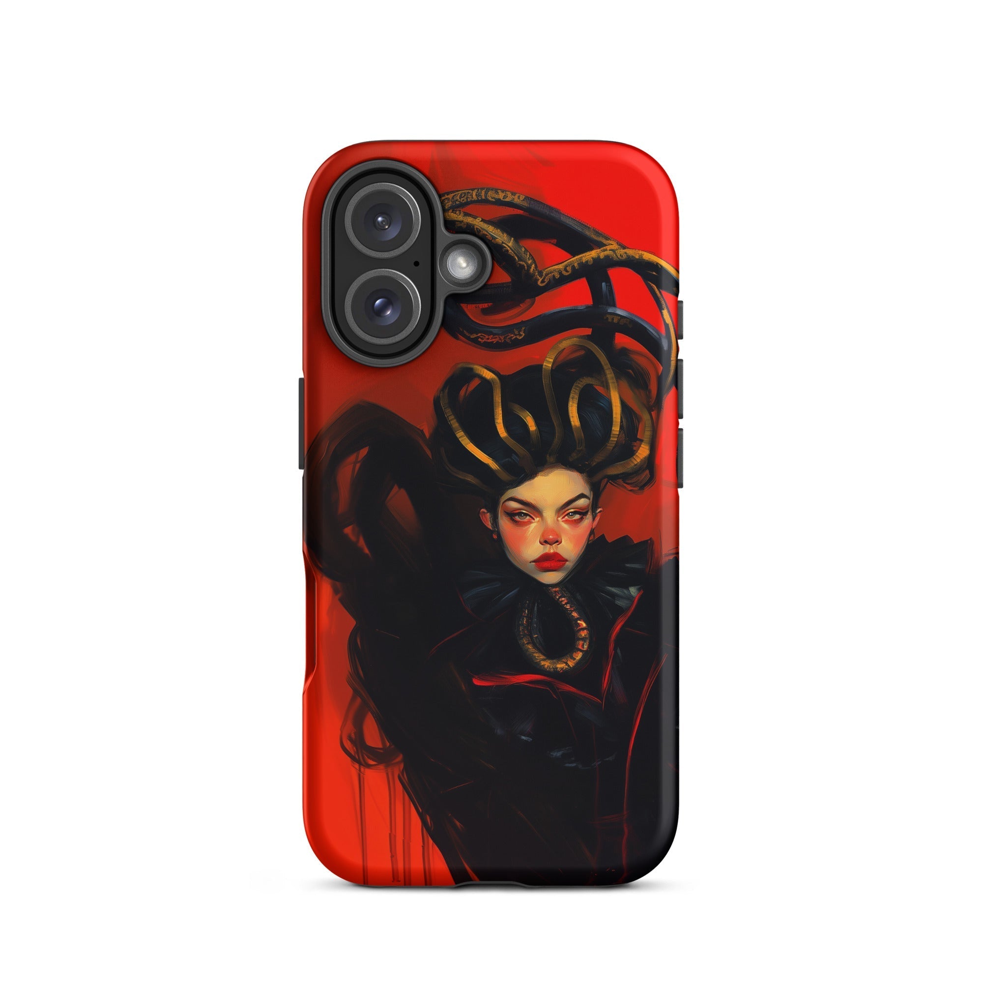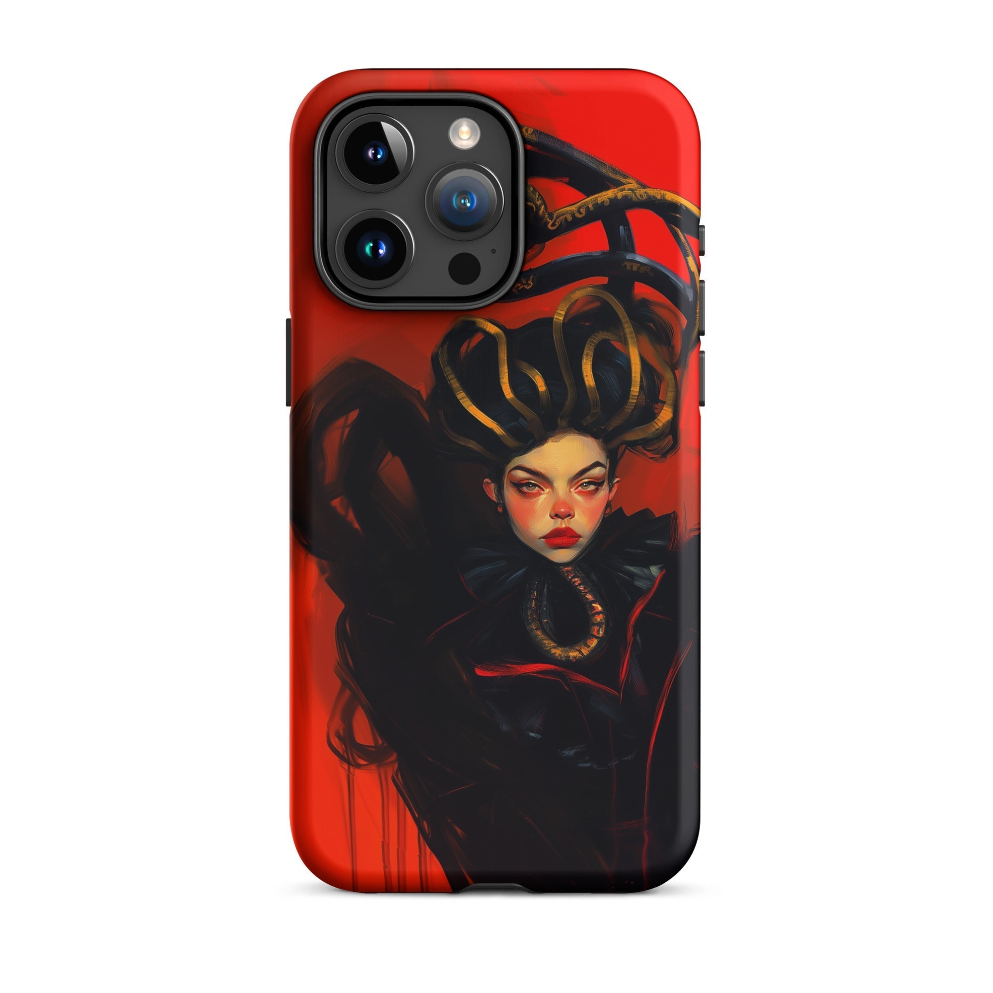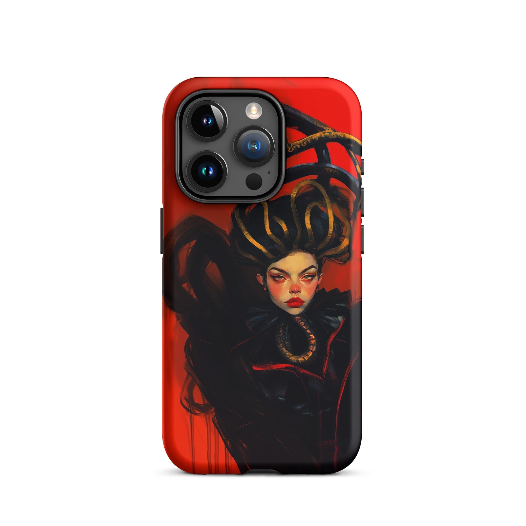 Diese iPhone-Hülle verwandelt Ihr Gerät in einen mächtigen Talisman, gehüllt in die dunkle, üppige Energie einer furchterregenden queeren Hexe. Das sorgfältig reproduzierte Kunstwerk zeigt die markante Figur einer sapphischen Zauberin, deren Zöpfe sich wie Schlangen winden, getaucht in tiefes Gold und schattiges Schwarz. Jedes Detail flüstert mit einem opulenten Surrealismus und zieht Sie in ihre gefährliche Welt.