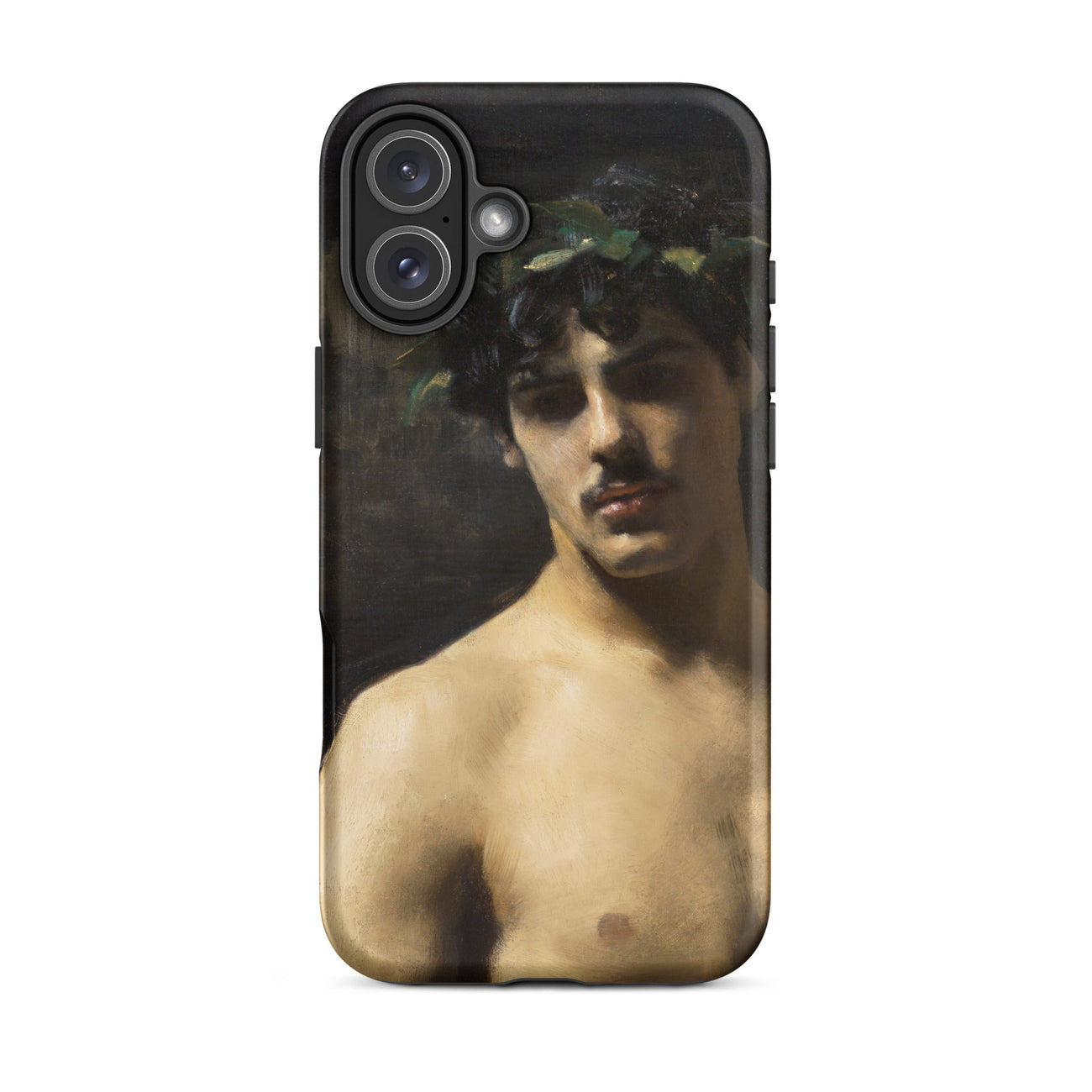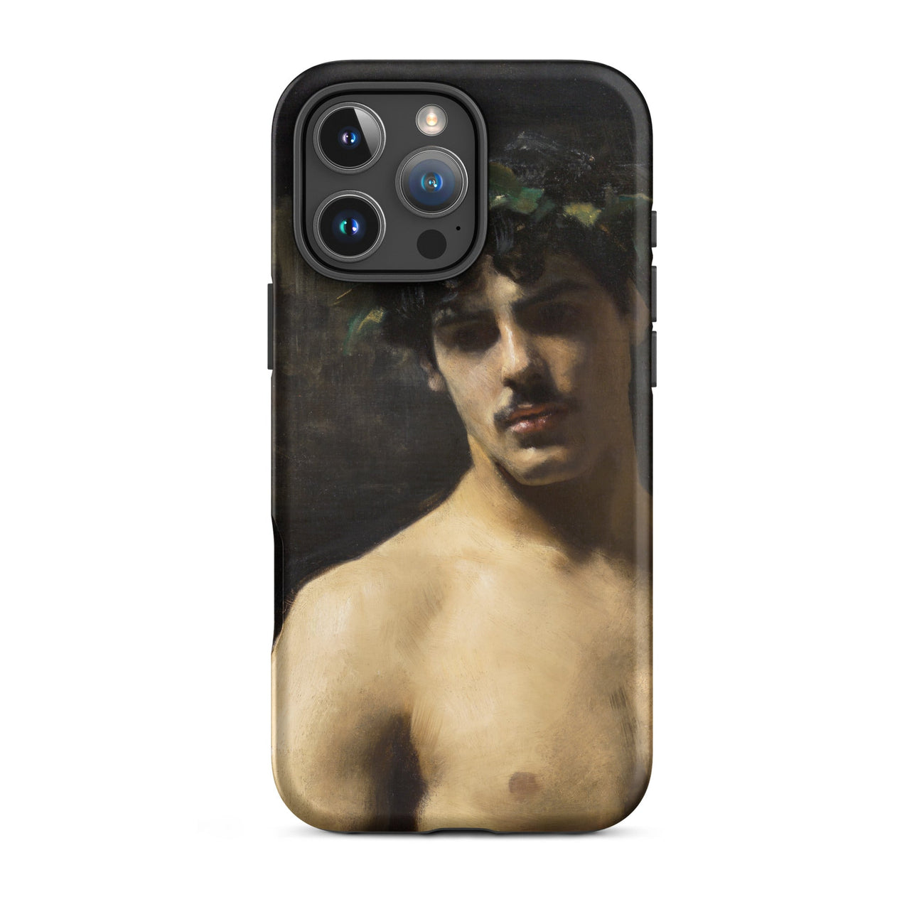 Verhüllen Sie Ihr iPhone in einen Mantel subversiven Verlangens mit diesem von Sargent inspirierten Kunst-Case. Sein "Mann mit Lorbeeren" taucht aus den Chiaroscuro-Schatten auf und stellt viktorianische Tabus mit jedem Pixel in Frage.