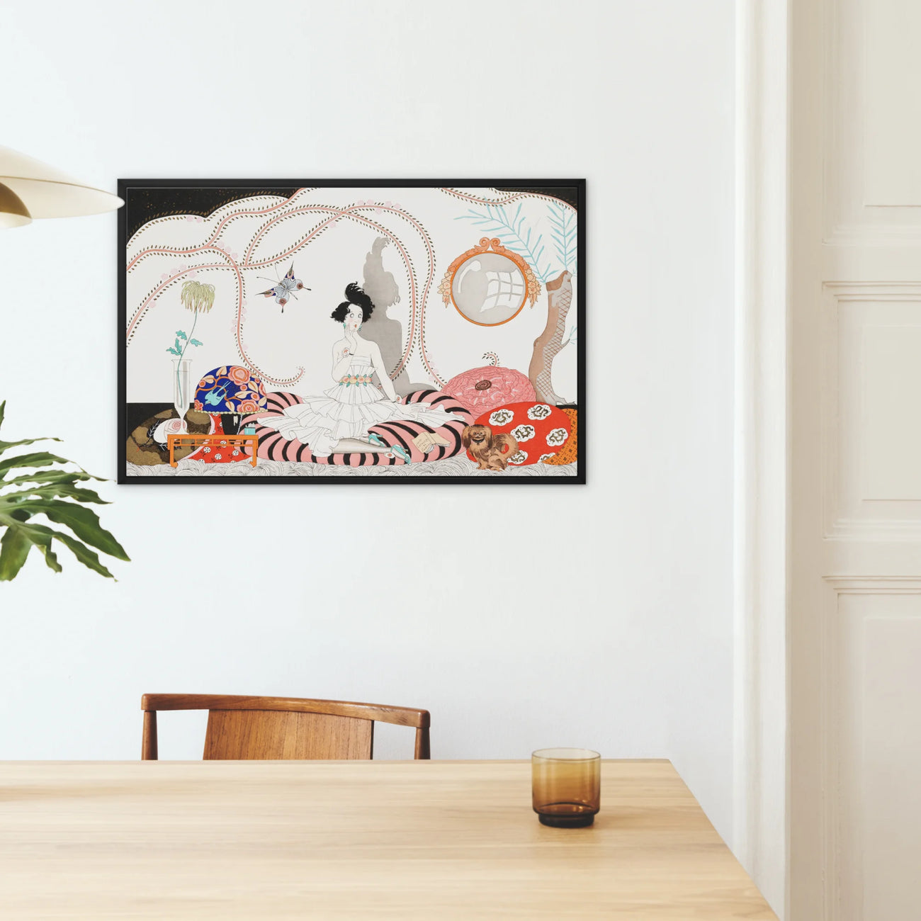 Jugendstil Florieren Sie sich mit mutigen Art -Deco -Geometrien und zeigen Barbiers entscheidende Rolle bei der Überbrückung dieser einflussreichen Bewegungen. Diese Exquisites gerahmte Leinwand Print lädt Sie ein, sich in einer vergangenen Ära von Pariser Glamour zu verlieren, in der jedes Element eine Geschichte über Dekadenz und künstlerische Revolution der Jazz -Alter erzählt.